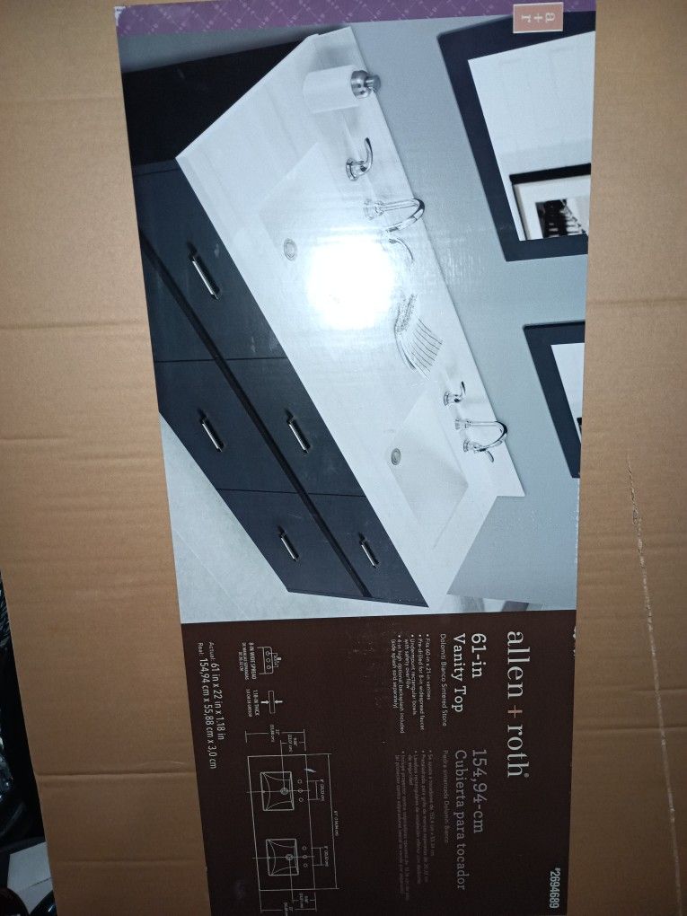 Top only New in box. Allen Roth 61 inch vanity top #(contact info removed)