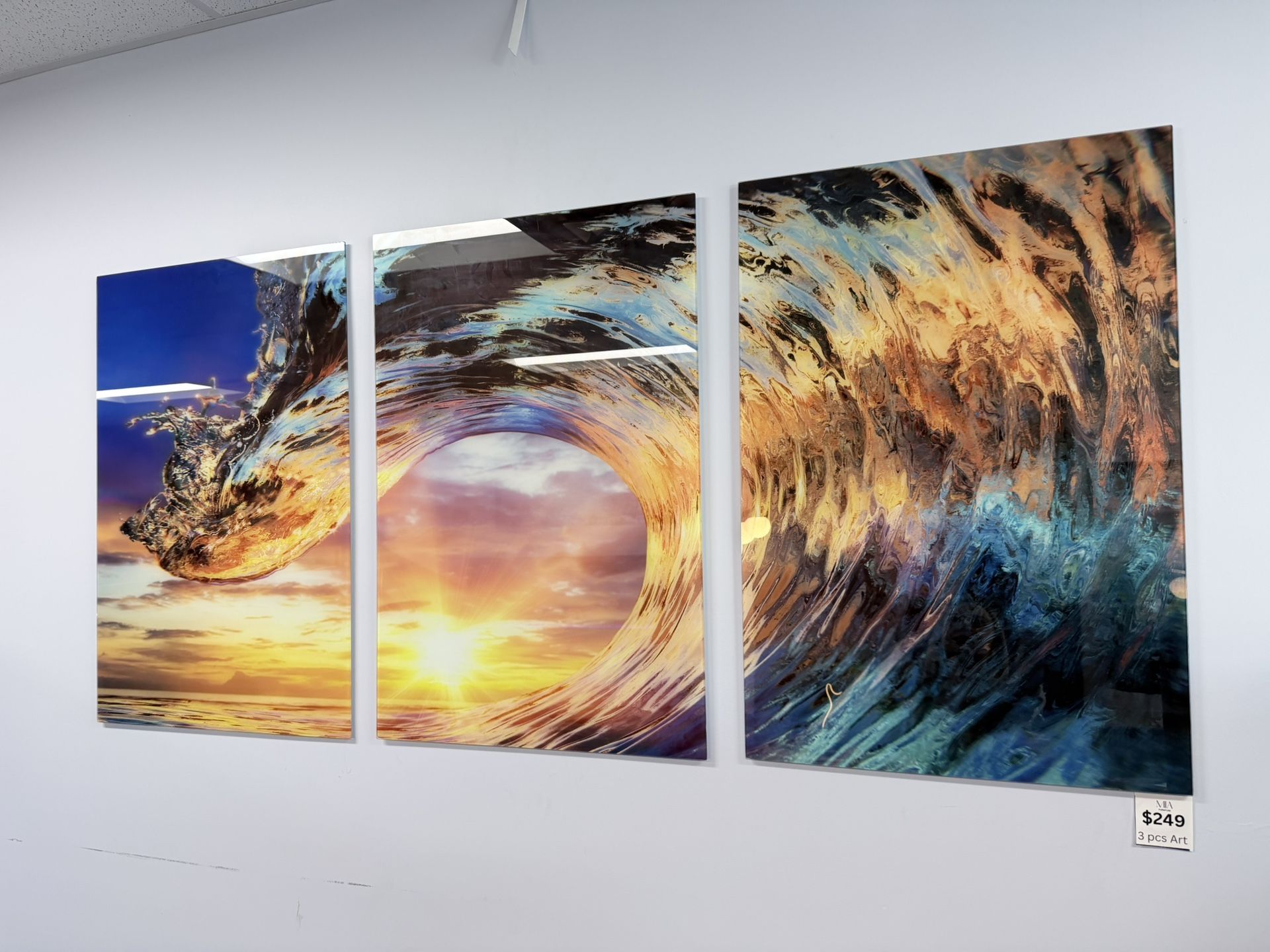 Wave 3 Piece Tempered Glass Wall Art 72”x36”