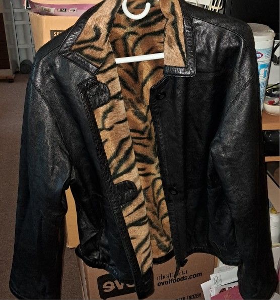 Original Leather Coat Two Way Wearable color Tyger brown and black