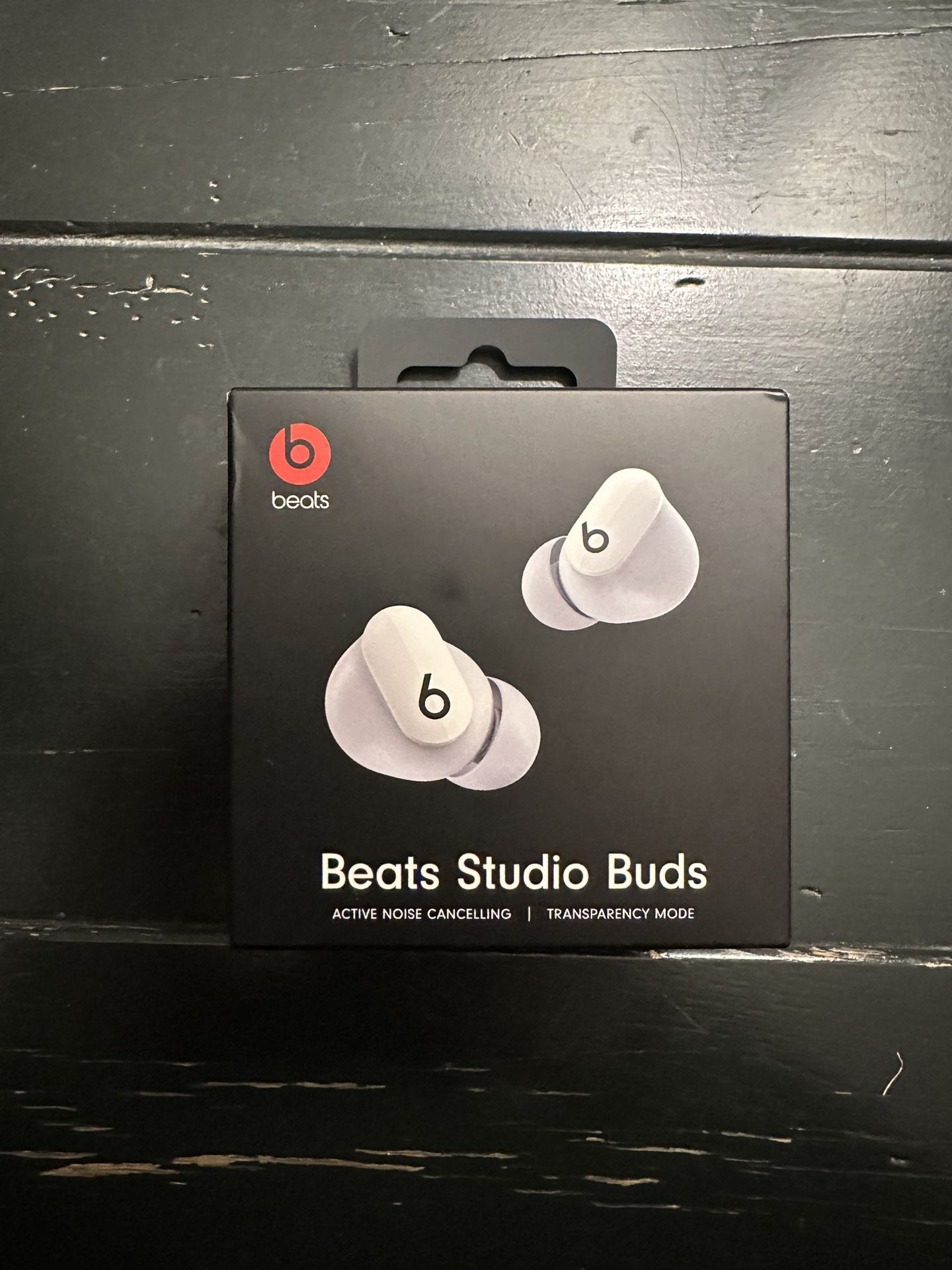 Beand knew, Never opened. Features & details Custom acoustic platform delivers powerful, balanced sound Control your sound with two distinct listening modes: Active Noise Cancelling (ANC) and Transparency mode Three soft ear tip sizes for a stable and comfortable fit while ensuring an optimum acoustic seal Up to 8 hours of listening time (up to 24 hours combined with pocket-sized charging case) Industry-leading Class 1 Bluetooth for extended range and fewer dropouts High-quality call performance and voice assistant interaction via built-in microphones IPX4-rated sweat- and water-resistant wireless earbuds Beats wireless headphones and earphones are compatible with Apple and Android devices What’s in the box – Beats Studio Buds true wireless noise cancelling earphones, charging case, ear tips with three size options, USB-C to USB-C charging cable, Quick Start Guide, warranty card (USB-C power adapter sold separately)