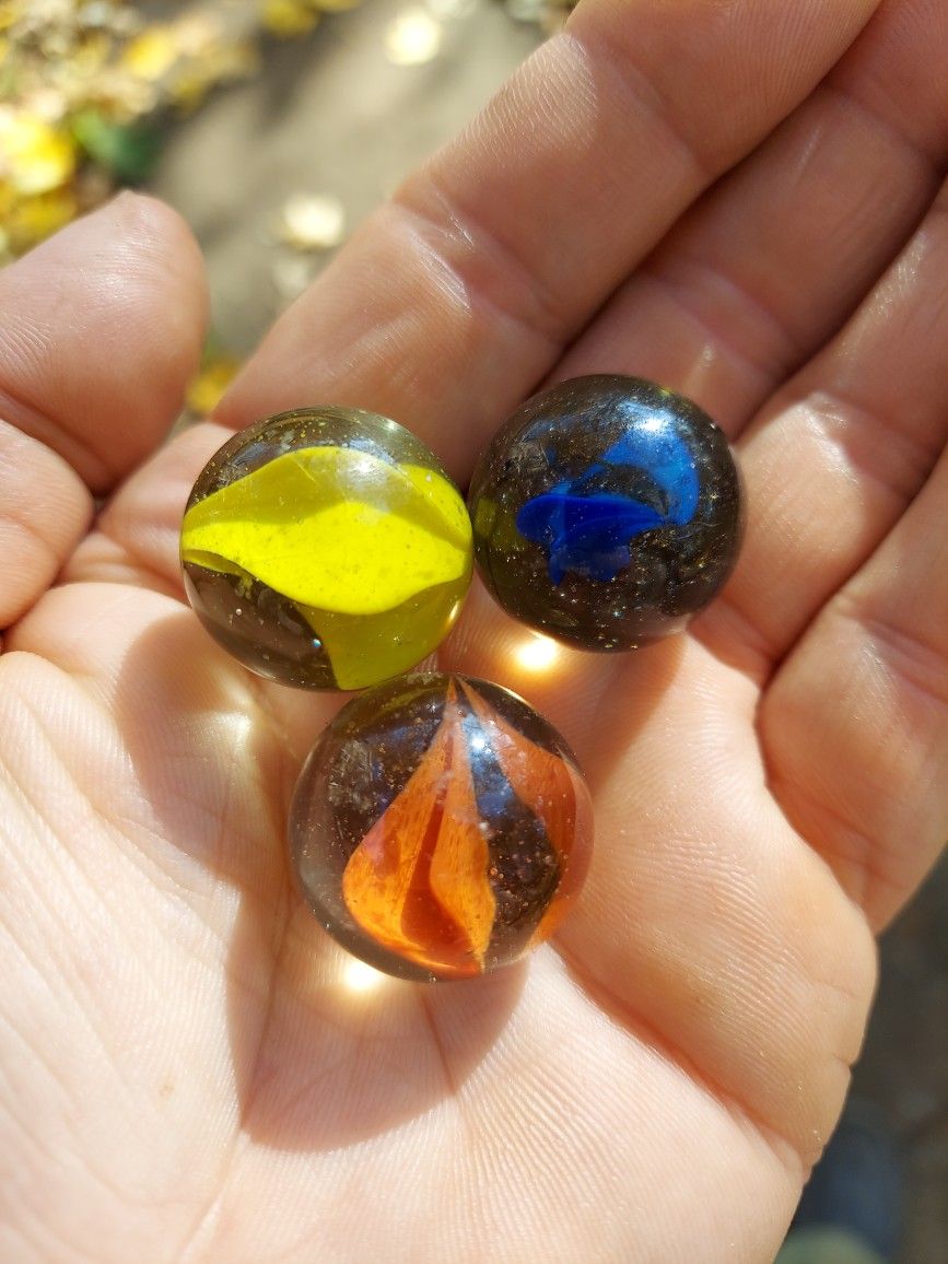 Quantity of 3 as shown in lightly used condition. I'm not an expert on marbles so I don't know exactly how old these are but they came from an estate that had a lot of 1960s and 70s toys and they were found in the kids old bedroom inside Wolverine tin litho tea set dishes I assume that they are most likely 60s vintage