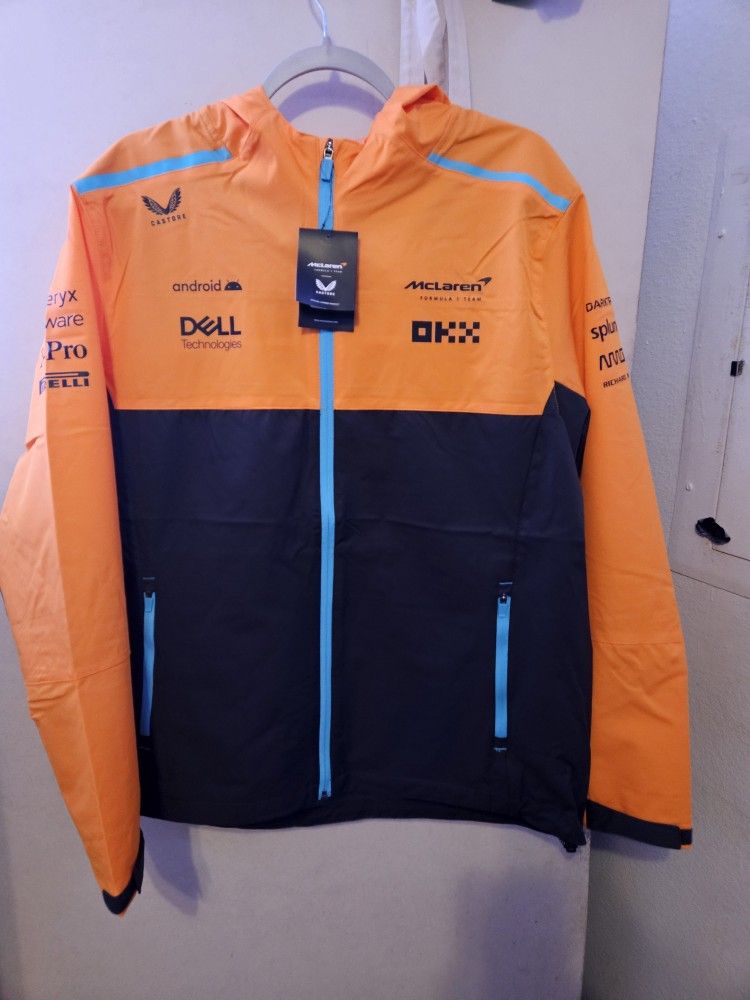 SHIPPING ALSO AVAILABLE Mclaren raincoat Purchased at 2024 Las Vegas Grand Prix No issues with product the jacket is super nice. It just wasn't the item I wanted and was unintentionally given the wrong one. Please message for proof of purchase or any questions regarding the item. (Price is negotiable not accepting bottom dollar offers)