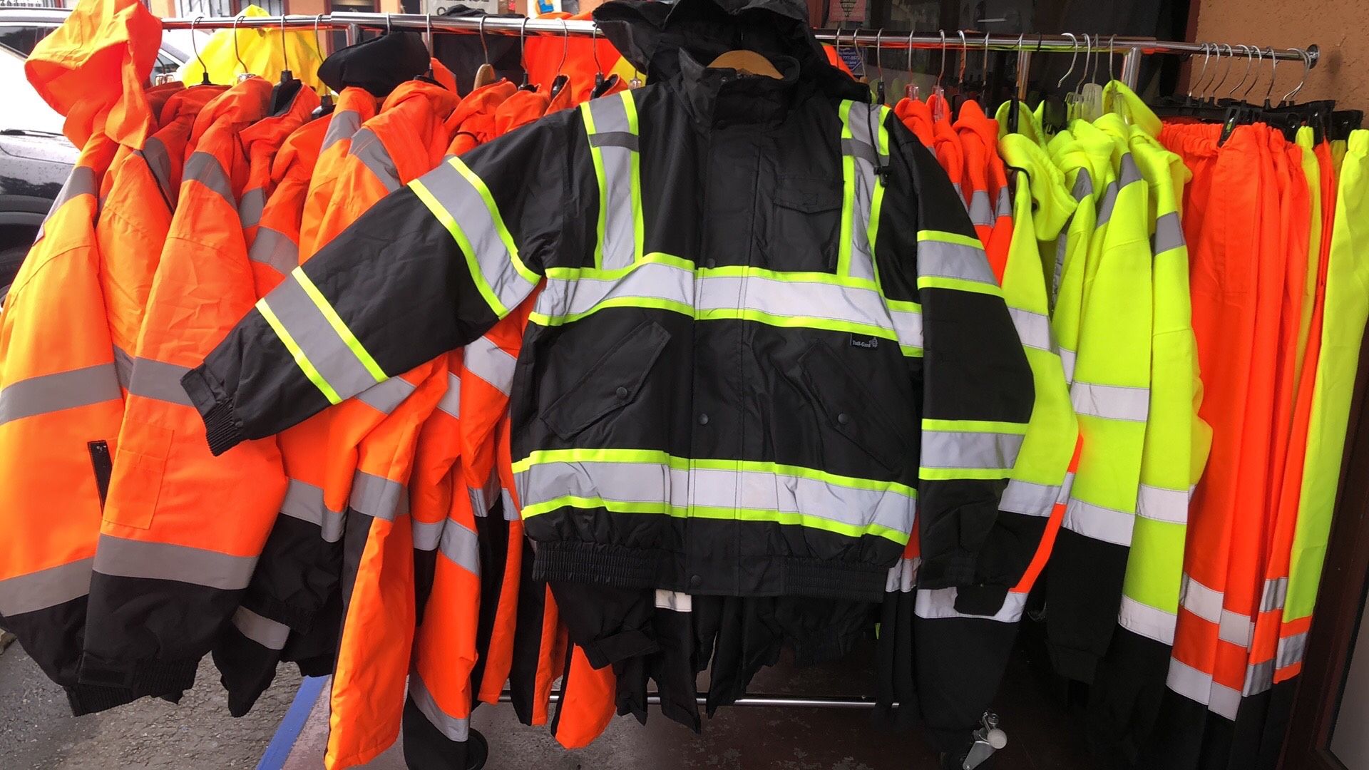 Visibility Waterproof Jacket Color: Black Size: Small - Medium - Large - XLarge - 2XL - 3XL - 4XL $40 ea Color: Orange & Lime Size: Small - Medium - Large - XLarge - 2XL - 3XL - 4XL - 5XL $35 ea + tax Cash & Zelle Debit & Credit Apple Pay Pick up only
