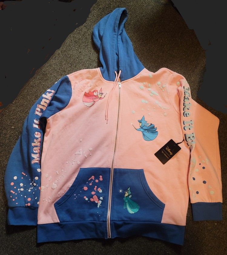 Brand new Her universe Disney Sleeping Beauty Fairies Color Block Zippered Hoodie size XL