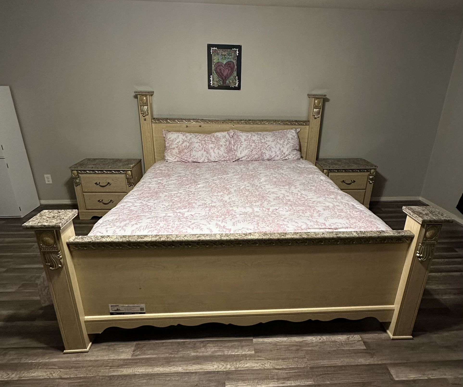 Bed frame, mattress, night stand and dresser (tv for additional $50).