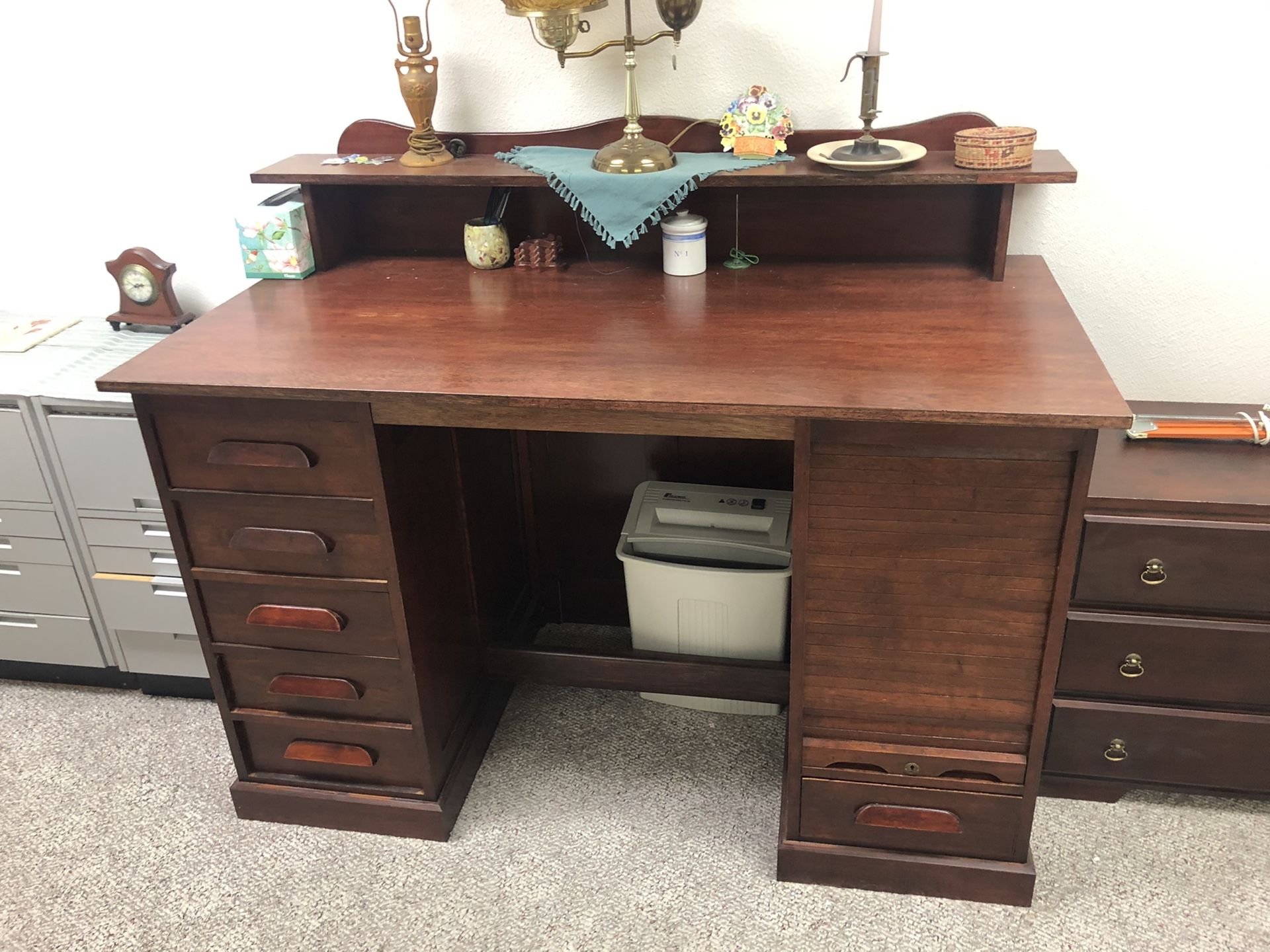 Great drafting table beautiful shape heavy duty. Used . Built in the 30s could be mahogany not sure everything works roll .