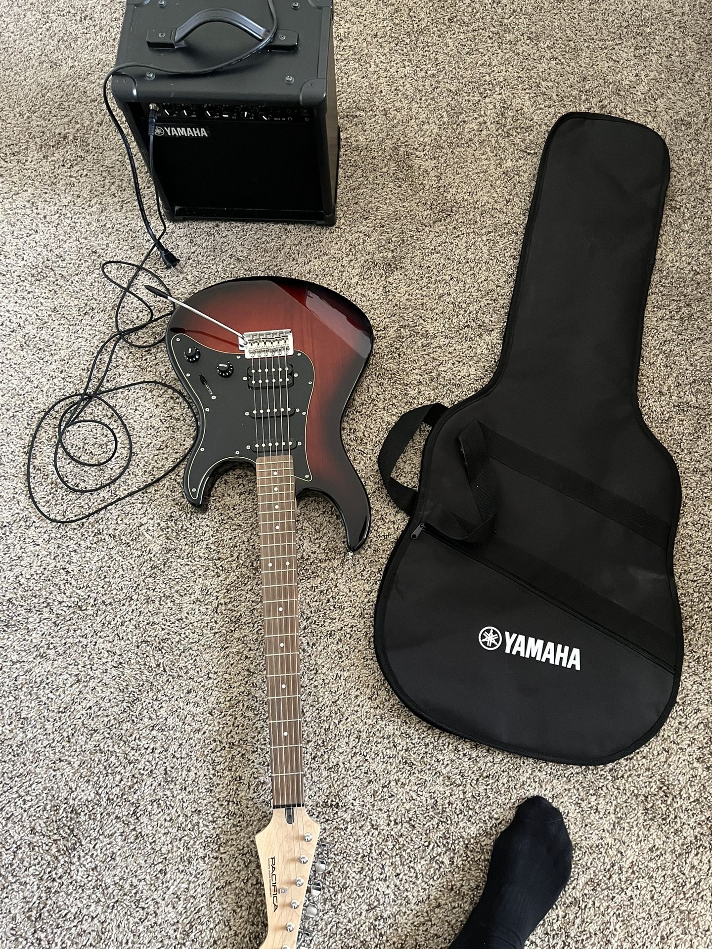 Yamaha gig maker set. Comes with Pacifica electric guitar, amp, and bag. Never been used much. In good shape