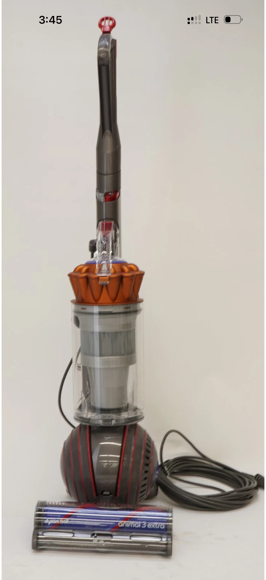 Dyson Ball Animal 3 Extra Upright Vacuum Cleaner Vacuum cleaner with 3 cleaning modes • Covers up to 50 feet of area • Stiff, dense nylon bristles remove stubborn dirt • Instant-release wand cleans up high, down, and all around • Designed for simple, effective cleaning on stairs • Motor 3.24 horsepower • Easy, hygienic emptying with the large bin • Ergonomically designed for more comfortable vacuuming
