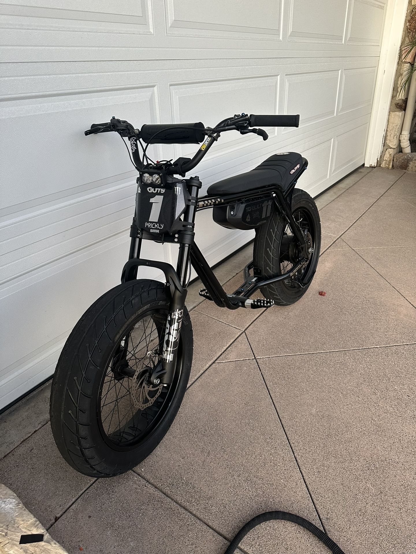 Titanium bolts Smx designs decals Motocutz plate Baja Pro taper bars Black pro taper bar pad Guts seat cover Odi grips 4 piston deore 2 piston shimano mt200 Lzrd tires Upgraded forks Peg kit