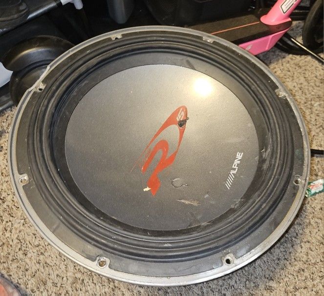 Have a 15 inch alpine type r. Not the prettiest but still knocks hard. U can test it . 100$ FIRM.