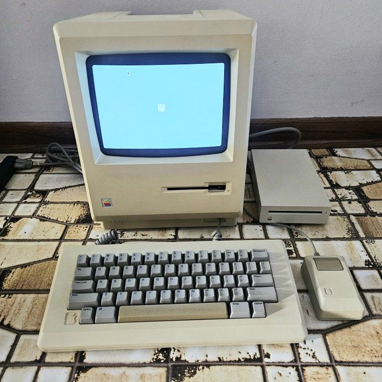 Super cool Apple Macintosh 512K Vintage Computer with Original Keyboard, Mouse, Disc Drive. Tested working, turns on as seen in pictures. Please message if interested and thanks for looking.