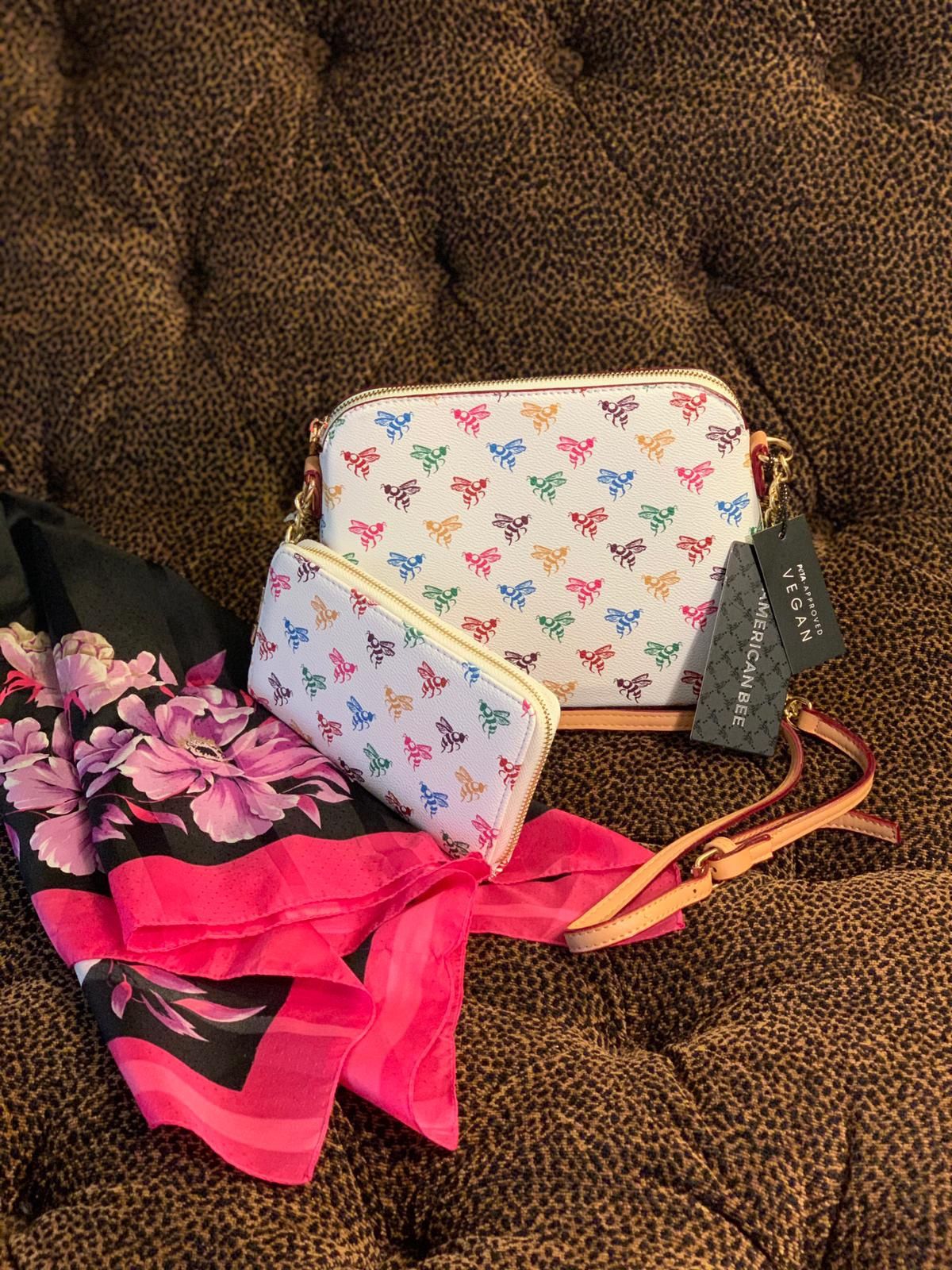 Christmas Gift For Her Handbag Set Vegan Leather Bee Printed