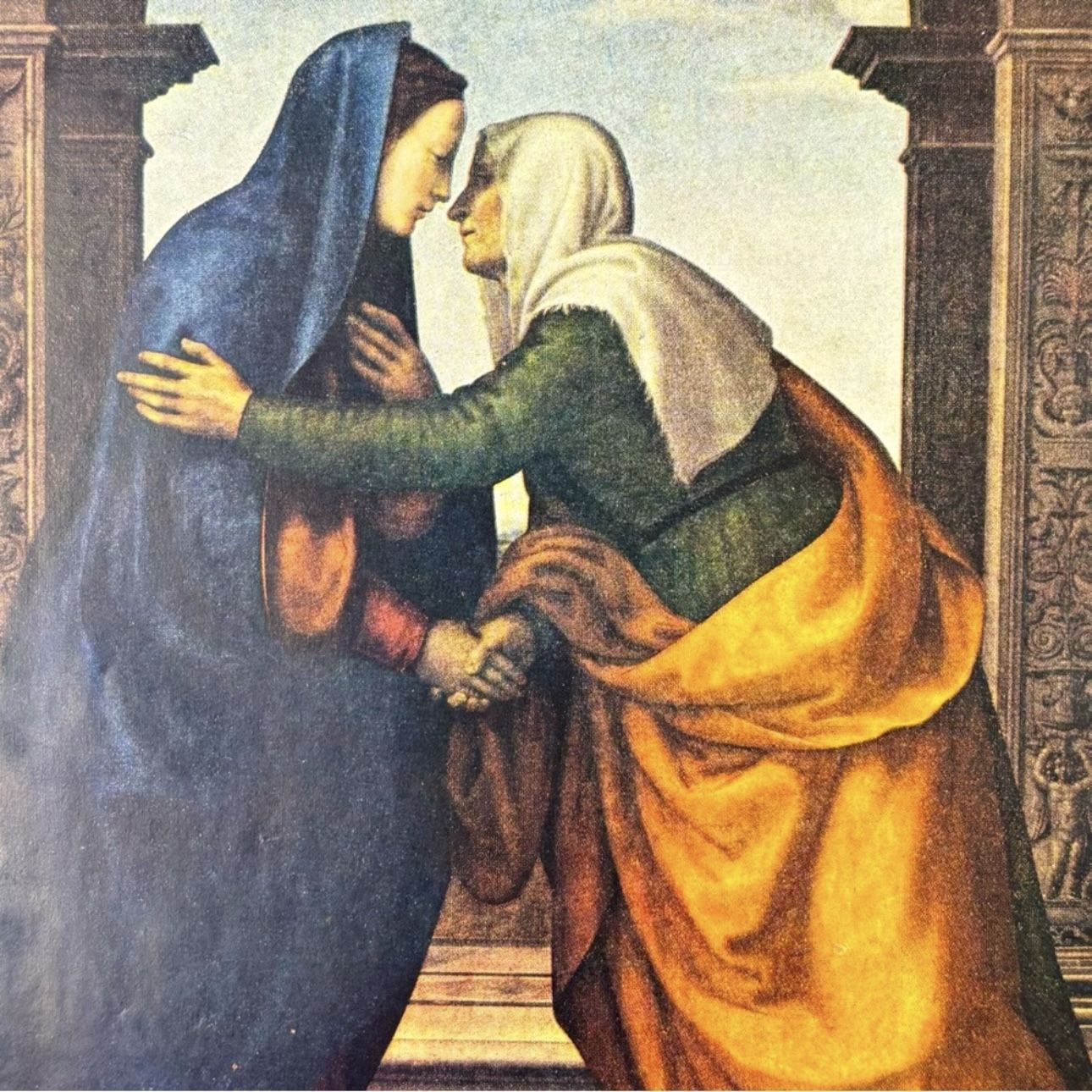 This piece has been in a cabinet in our house for decades. It is originally from the 1930’s. Quality Printed in The U.S.A. SMALL SIZE 5 7/8 x 10 1/2” THE VISITATION Original Vintage Art Print Antique Collectible Ephemera Mariotto di Bindo di Biagio Albertinelli (13 October 1474 – 5 November 1515), was an Italian Renaissance painter active in Florence. He was a close friend and collaborator of Fra Bartolomeo. Some of his works have been described as "archaic" or "conservative"; others are considered exemplary of the grandiose classicism of High Renaissance art. For an Impeccably Tasteful Home... It could be nicely matted and framed, or reserved in a collection for posterity. K0005 We ship immediately, every business day! $4.49