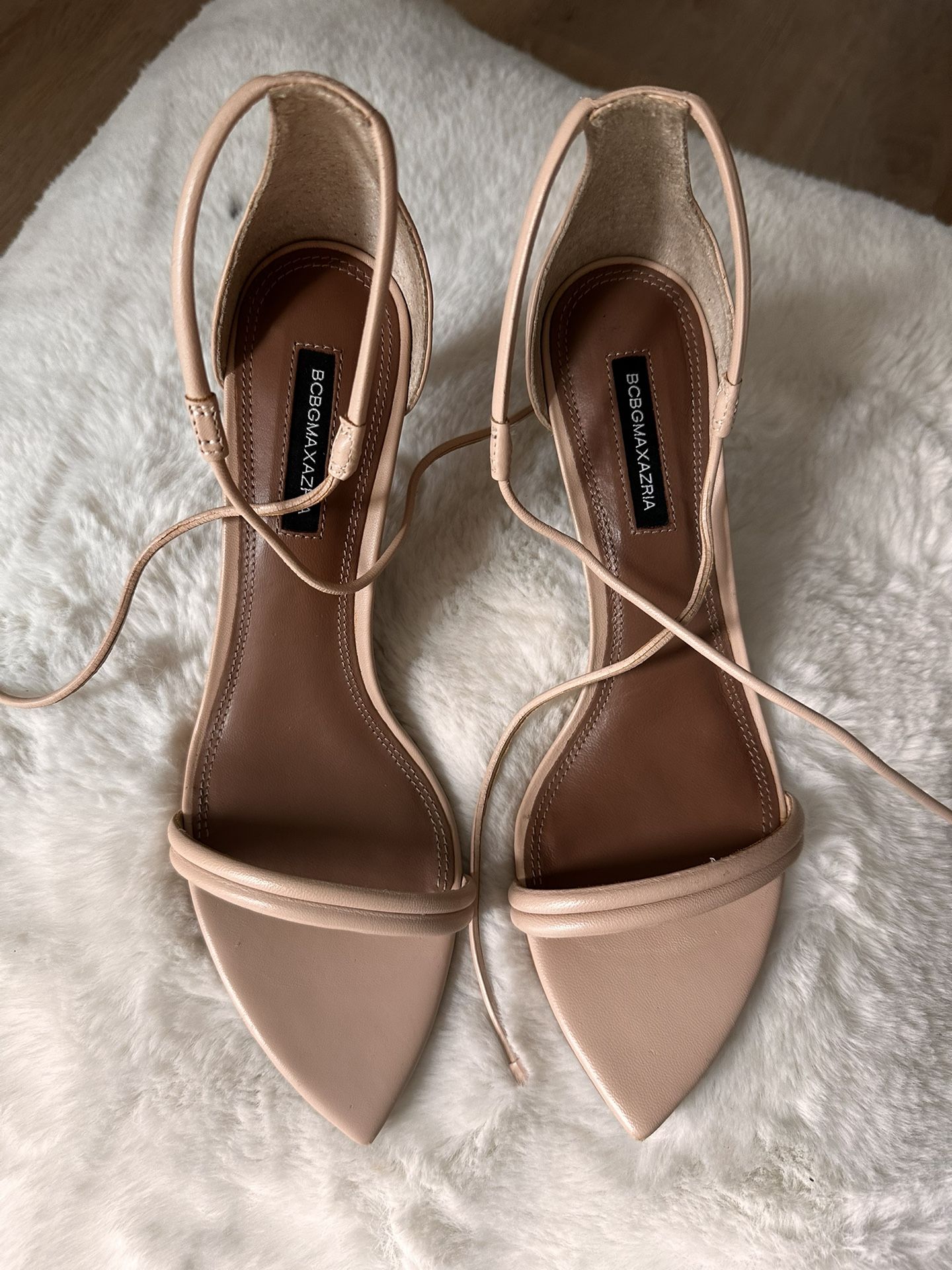 Like new- worn once in photoshoot. Nude color. Size 7. Low heel. Leather material.