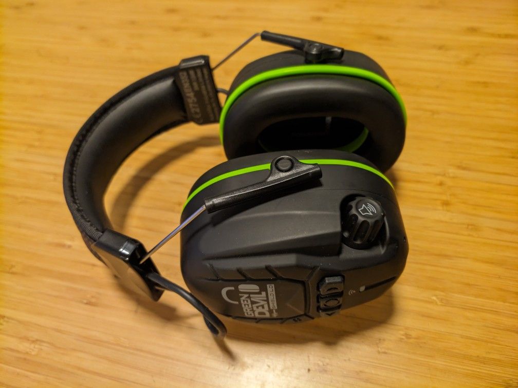 These are certified electronic hearing protection with pass-through sound, speakers for listening to music, and a removable microphone for phone calls or bluetooth radio use. Super thick padding, all-day comfort and surprisingly lightweight still. Barely used a couple times so essentially like-new. Comes with USB C charging cable, removable microphone, aux cable, soft carrying bag. Retails for $70. Full details: 【Intelligent Active Listening】:GREEN DEVIL Electronic bluetooth earmuffs use Integrated surround microphones capture and transmit ambient noise via the SAL function to provide users with advanced situational awareness within the capsule. Helps protect you from hazardous noises while enhancing your situational awareness. 【Stable Buletooth Wireless Technology】:Use Bluetooth 5.3 technology,which work range is wider and the connection is more stable,Seamlessly connects to your phone, computer, or tablet for easy on the go use and control of your music or phone calls.The mic allows you to take and answer calls hands-free without removing the headphones, and not miss calls with it when you are mowing or working. No need to take off your hearing protection and sacrifice your hearing if you want to use your phone. 【Long Battery Life & HIFI Sound】: Low power consumption feature and a large 1000mAh battery ensure work throughout the day, eliminating the risk of power failure during operation, Achieve stability protection.Comes with a 3.5 mm AUX cable,convenient and safe charging using the USB Type-C connector. Enjoy loud, excellent, quality sound wherever you are with the high-quality microchips and Hi-Fi speakers. 【Extreme Comfort】:Padded headband offers exceptional comfort during extended periods of use, while its continuous length adjustment ensures perfect positioning. The extra-soft memory foam ear cushions provide pressure-free protection, ensuring that experiences optimal comfort without compromising performance. 【Professional Grade Industrial Protection】: GREEN DEVIL Shield LD work headphone is certified by ANSI S3.19 NRR 27dB and CE EN352-1 SNR 32 dB (European standard), can not only be used as working safety ear muffs but also perfect for mowing the lawn, yard working, sawing, woodworking, construction, snow blowing, golf course, operating heavy machinery and so on to protect your ears.