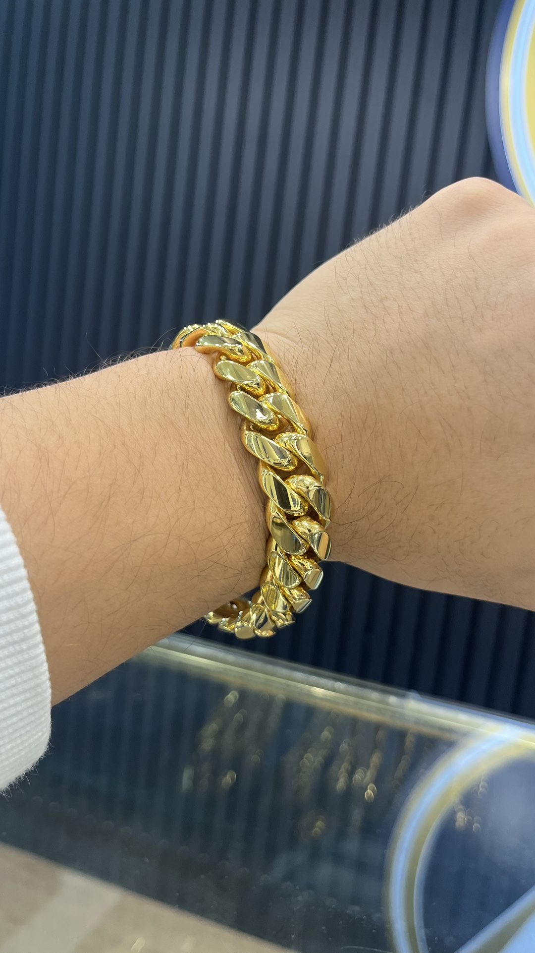 16MM Miami Cuban Link Bracelet 8.5” Plated with Real 14k Gold Over .950 Silver