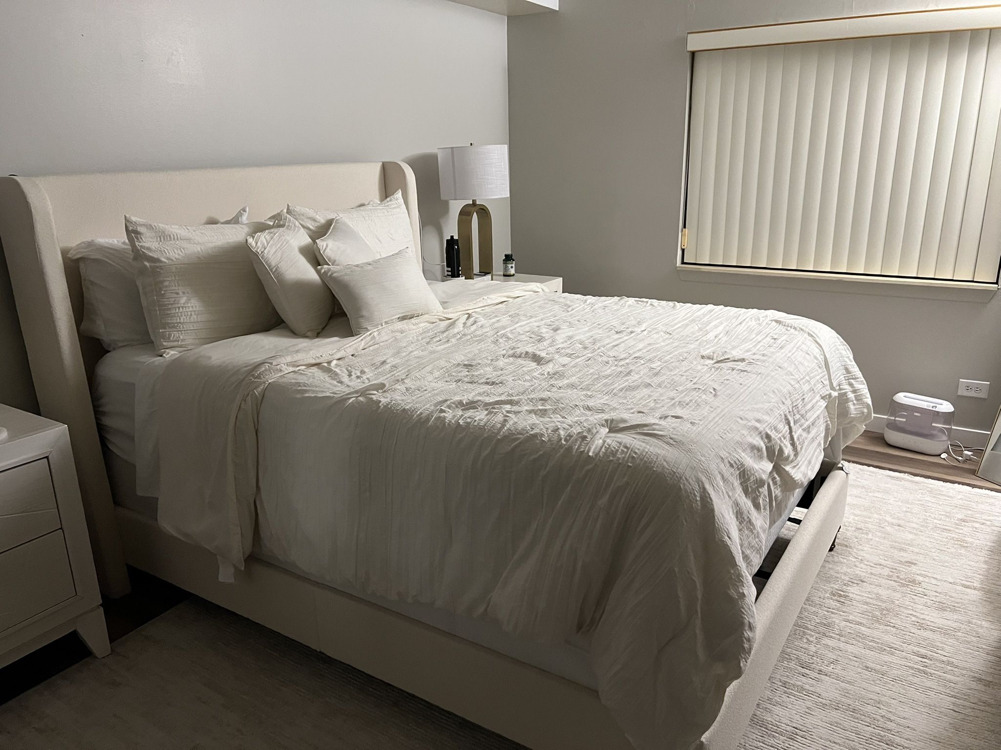 Like new bedroom. Less than one year using 6 pieces: 2 nights stands (type c and USB charger) 1 dresser 1 chest Queen bed Casper memory foam mattress (Costco) Casper Cooling Select 12" Hybrid Medium Firm Mattress. This bedroom very good quality and the mattress from Costco I paid $790 Like new one year old all of them. Moving to Ohio and want to sell everything in my house. $2000 or best offer Come check it