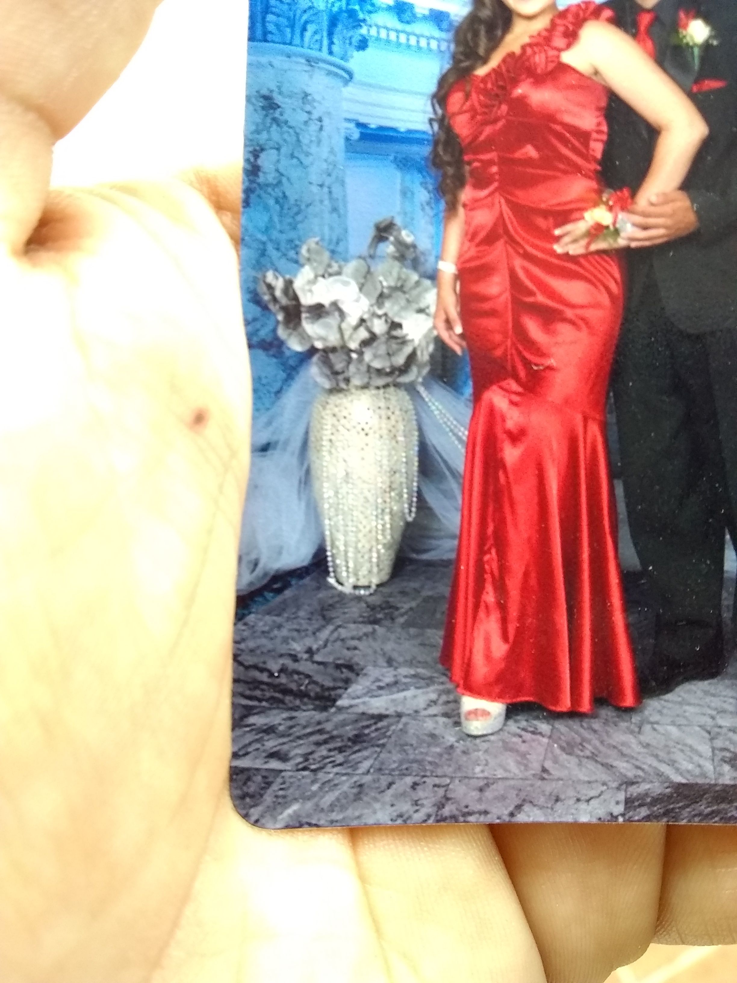 Red silky prom Dress Height:5'1 size 7-8 around waist in great condition $25