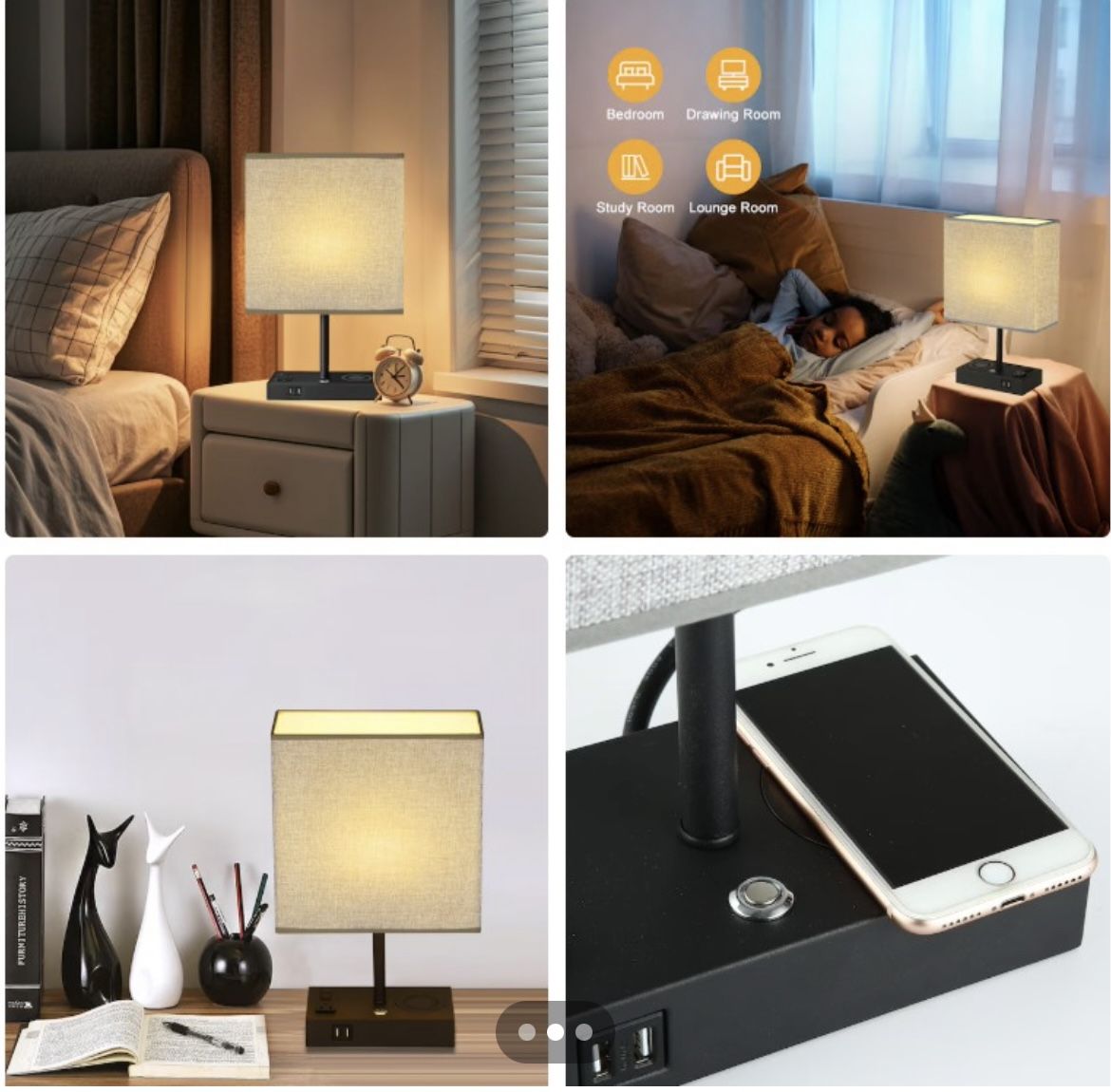 Table Lamp 17-in Gray LED Touch Table Lamp with Fabric Shade
