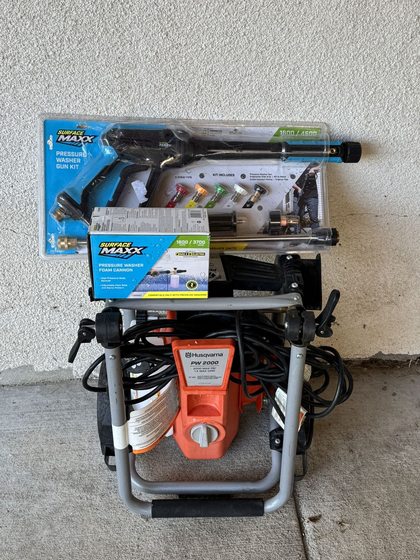 Bundle comes with everything you need to start your own detailing business. •Husqvarna 2300 pressure washer •Surface maxx pressure washer wand kit ( 5 tips, a side grip, and wand) •Surface maxx foam cannon Whether you’re wanting to start a business or detail your own car look no further this all in one bundle has everything you need.