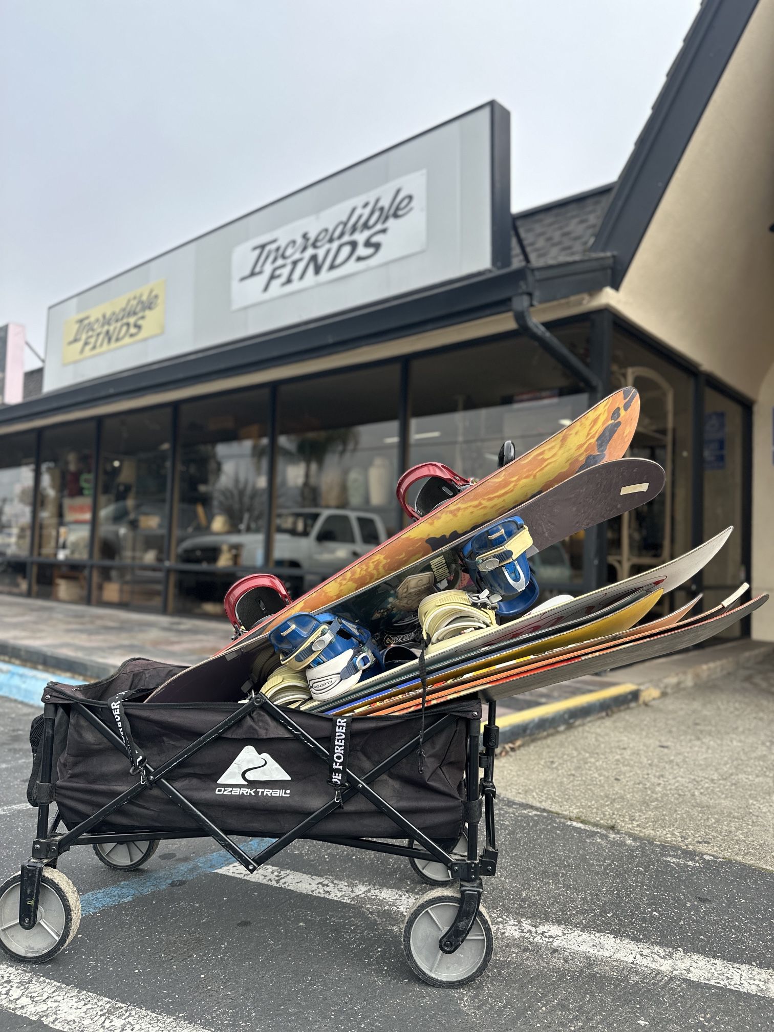 Have a good selection of second hand snowboards, with and without bindings, prices ranging from $50-$140. Checkout these and more at Incredible Finds at 3124 Mchenry Ave Modesto California! We are open Monday-Saturday 10 am to 5 pm ๐ค๐ผ All sales are final, remember to look over any sports equipment for dings or chips. Last pic is a sizing sheet for beginners to know what deck size is best for them.