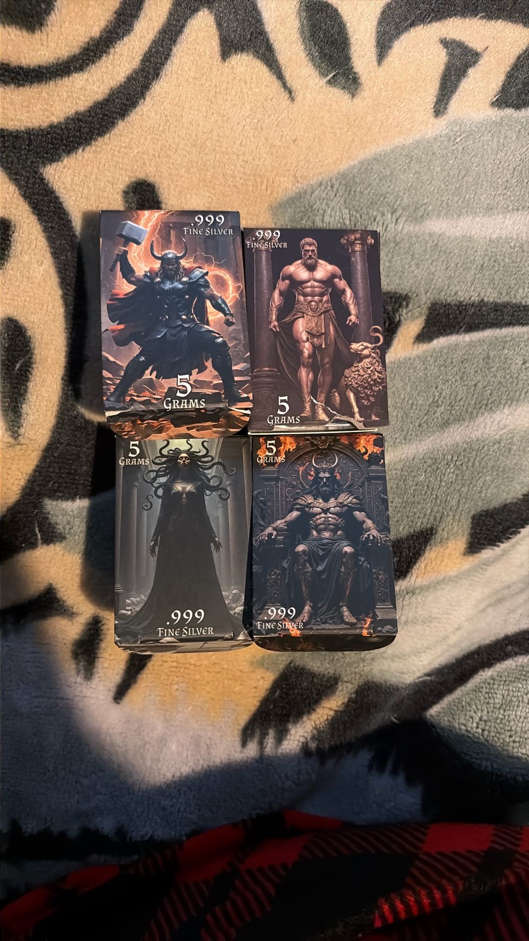 5 grams of silver in each God. 20 grams of pure silver total. Greek gods include; Thor, Hercules, Hades, & Medusa. Limited mintage of 3,000.