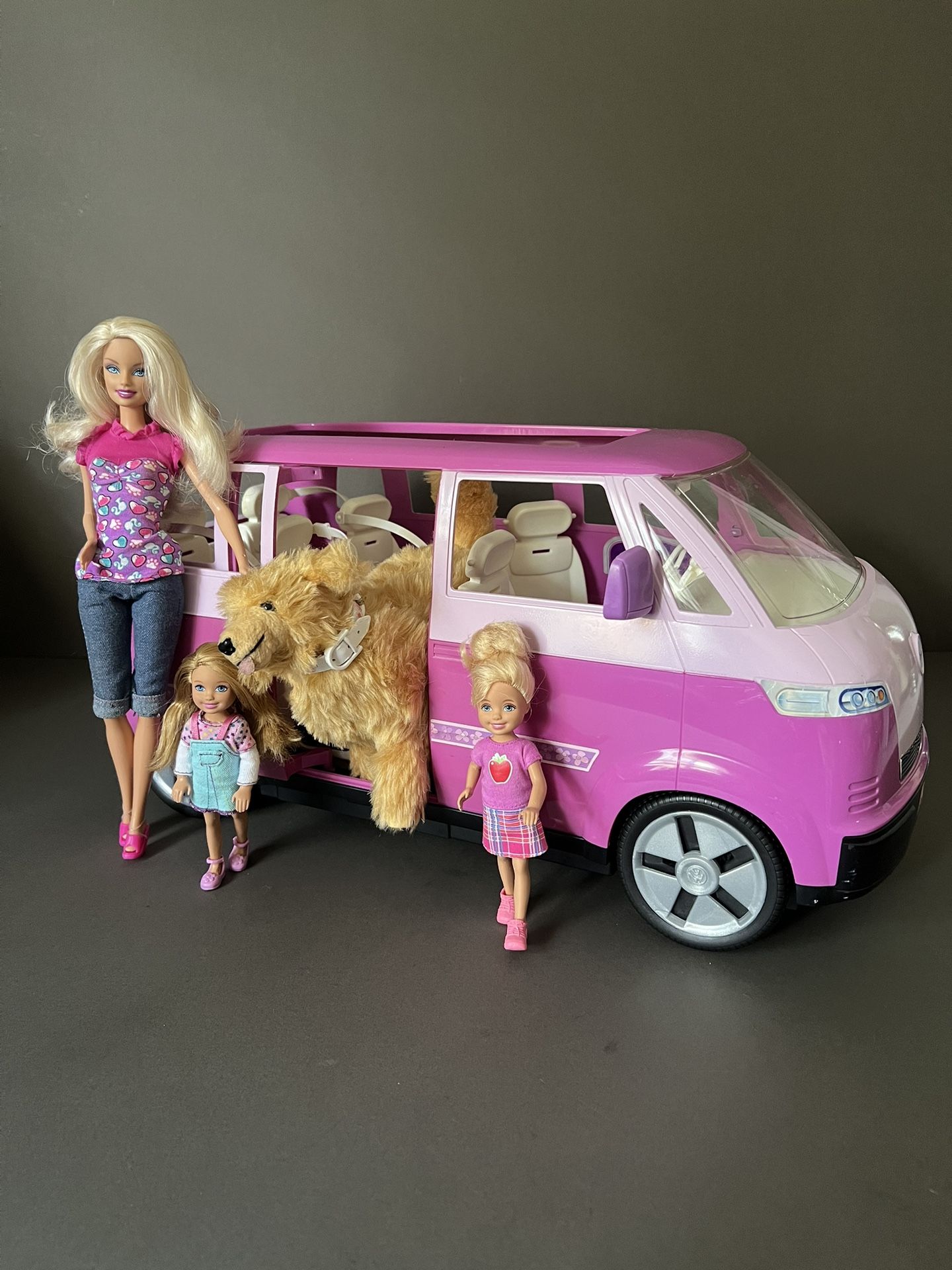 Barbie Car Vehicle •2002, Rare, Purple, Volkswagen Microbus Includes: • Barbie Doll •2x Chelsea Dolls •Ginger the golden retriever dog In good, clean, used condition. Royal Palm Beach Pick Up