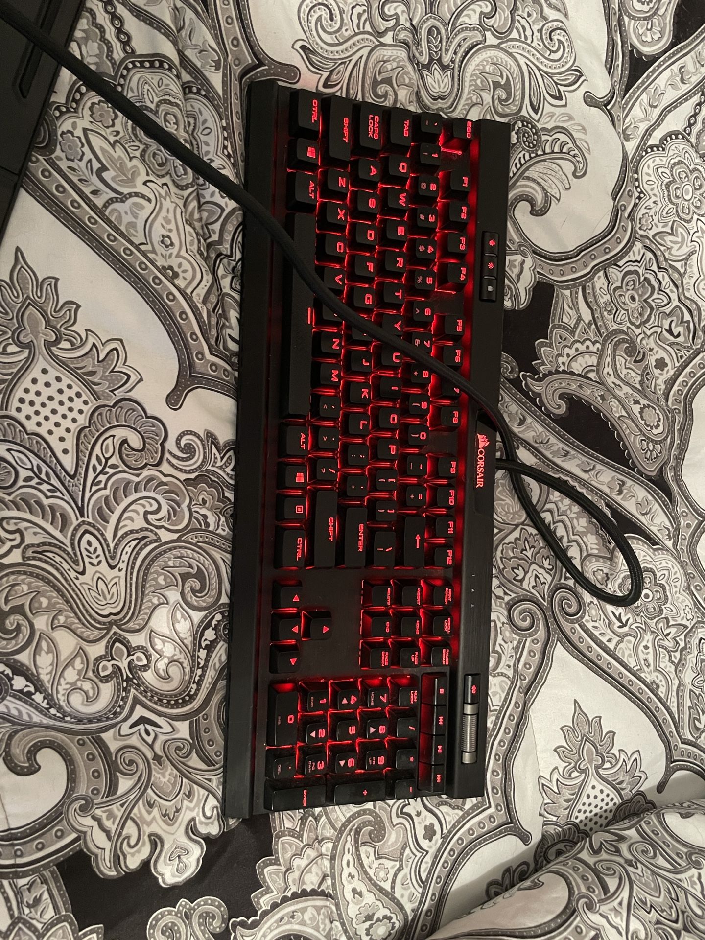 Works fine. Only selling because I upgraded to the K100. Works well with iCue lighting and very satisfying to type on.