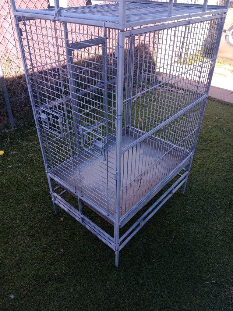 I have a large bird cage with removable bottom tray, it has 4 doors and its solid. It measures 52 inches tall, 32 wide and 23 inches deep. $100 Text thanks