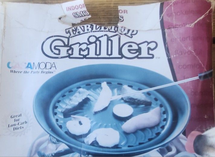 This a INDOOR SMOKELESS grill that you can use for those nights when it's 100°+ outside but u want to grill. Its never been used but the box recently got wet from kids playing in sprinklers while we were cleaning out warehouse. $40 obo.
