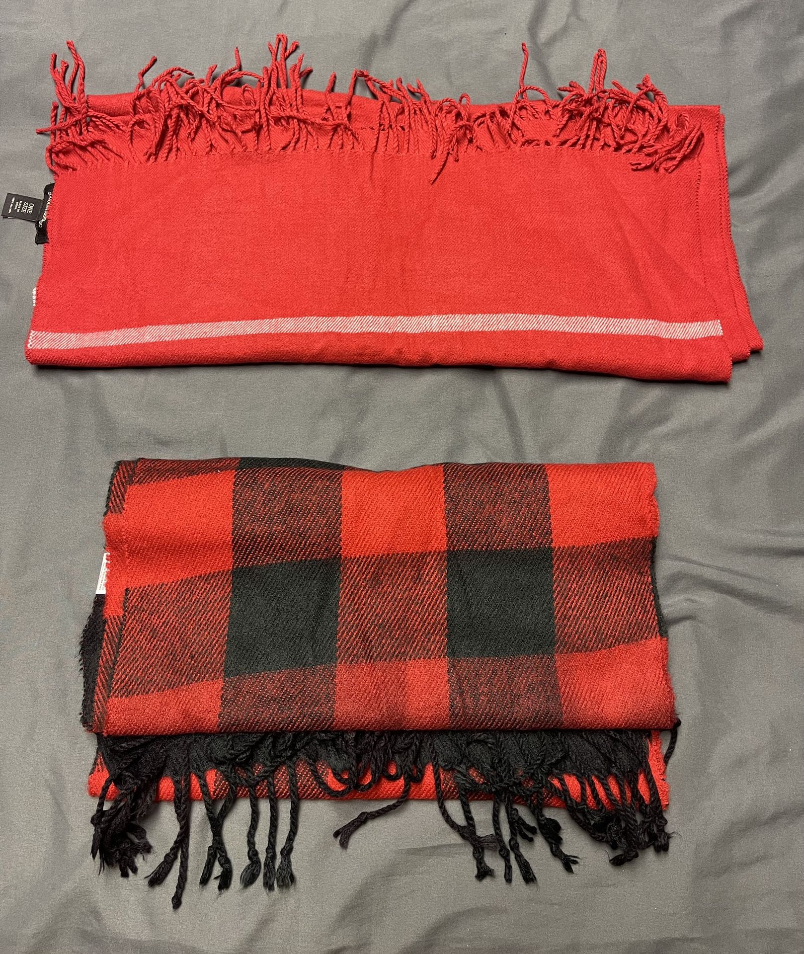 Red Scarves (Banana Republic and The Rail). Sold as a pair, I will not sell separately. I’m not looking for trades. Non smoker and non pet owner. Don’t ask for my phone number, iMessage or me to email the photos to someone else. I’ll report you.