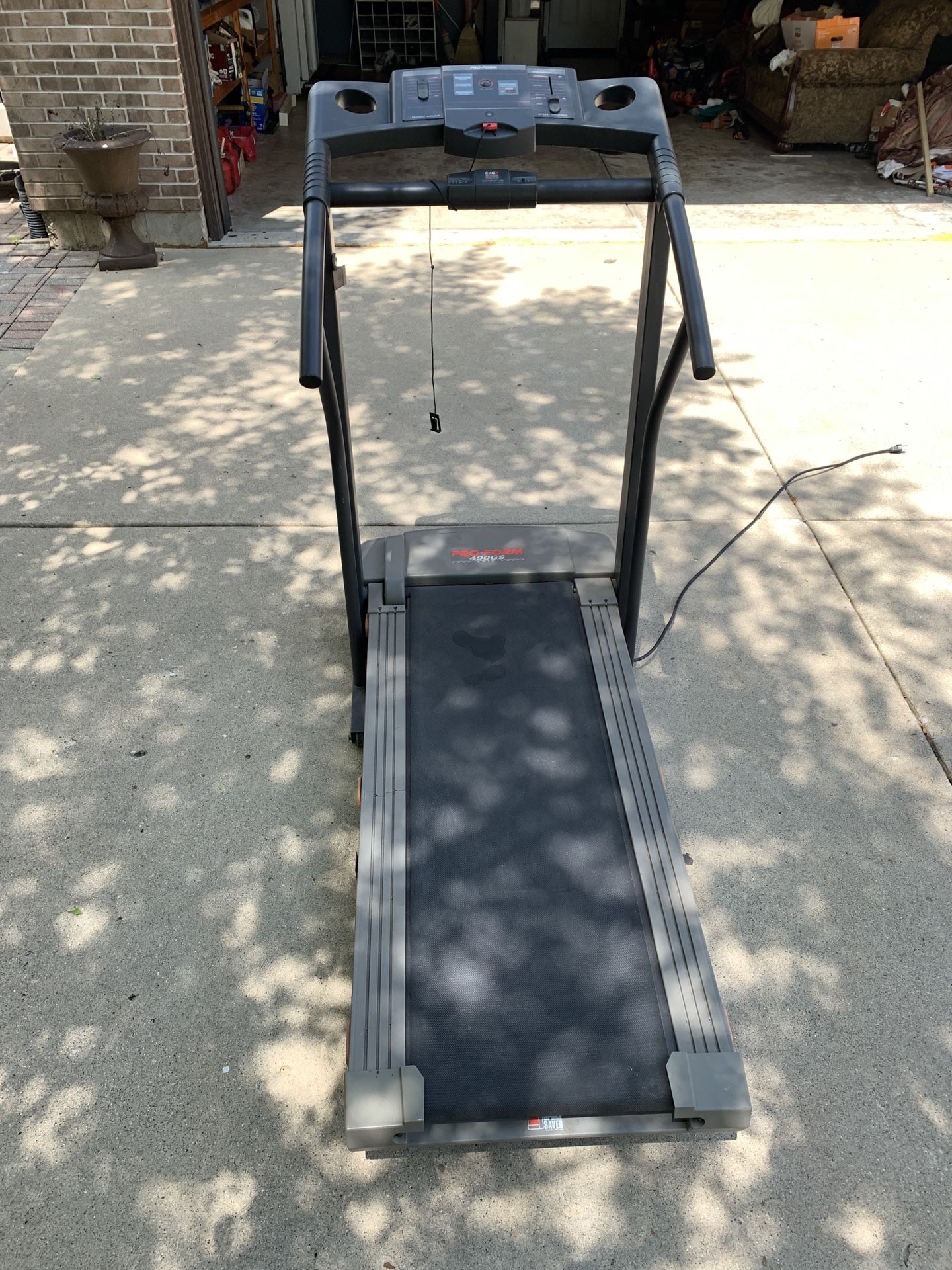 PROFORM 490GS Power Incline Treadmill for sale. Just brought home from In-Laws home whom purchased it new, and never used it. It can't have more than 1 mile on it, it sat in the Jacuzzi Bathroom in their home with Clothes on Hangers on it. I finally told them I'm taking & selling it. It Folds up & has wheels to move it. The controls are for the speed, and to incline/decline, and emergency shut off. I will only accept offers in person, with cash in hand. We live in St Charles, the first person that shows up to buy it will take it home. I will not respond to any offers unless you're standing in front of me with cash. And please don't buy it if you do not enjoy jogging & running. You don't need a Treadmill to hang clothes on. Best advice I can give from experience.