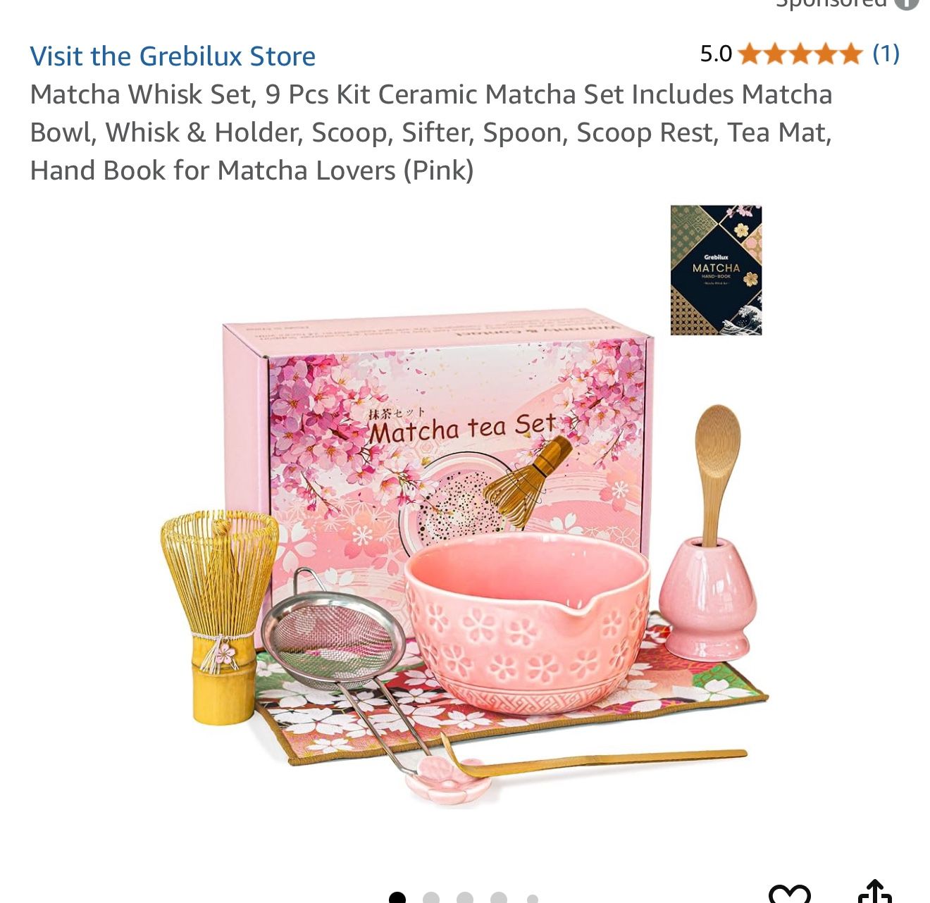 Matcha Whisk Set, 9 Pcs Kit Ceramic Matcha Set Includes Matcha Bowl, Whisk & Holder, Scoop, Sifter, Spoon, Scoop Rest, Tea Mat, Hand Book for Matcha Lovers (Pink)