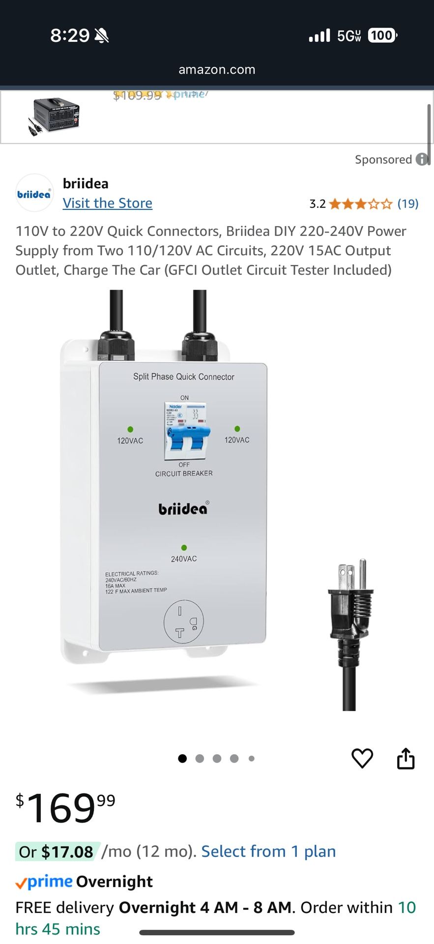 110V To 220V Quick Connectors, Briidea DIY 220-240V Power Supply From Two 110/120V AC Circuits, 220V 15AC Output Outlet, Charge The Car (GFCI Outlet Circuit Tester Included)