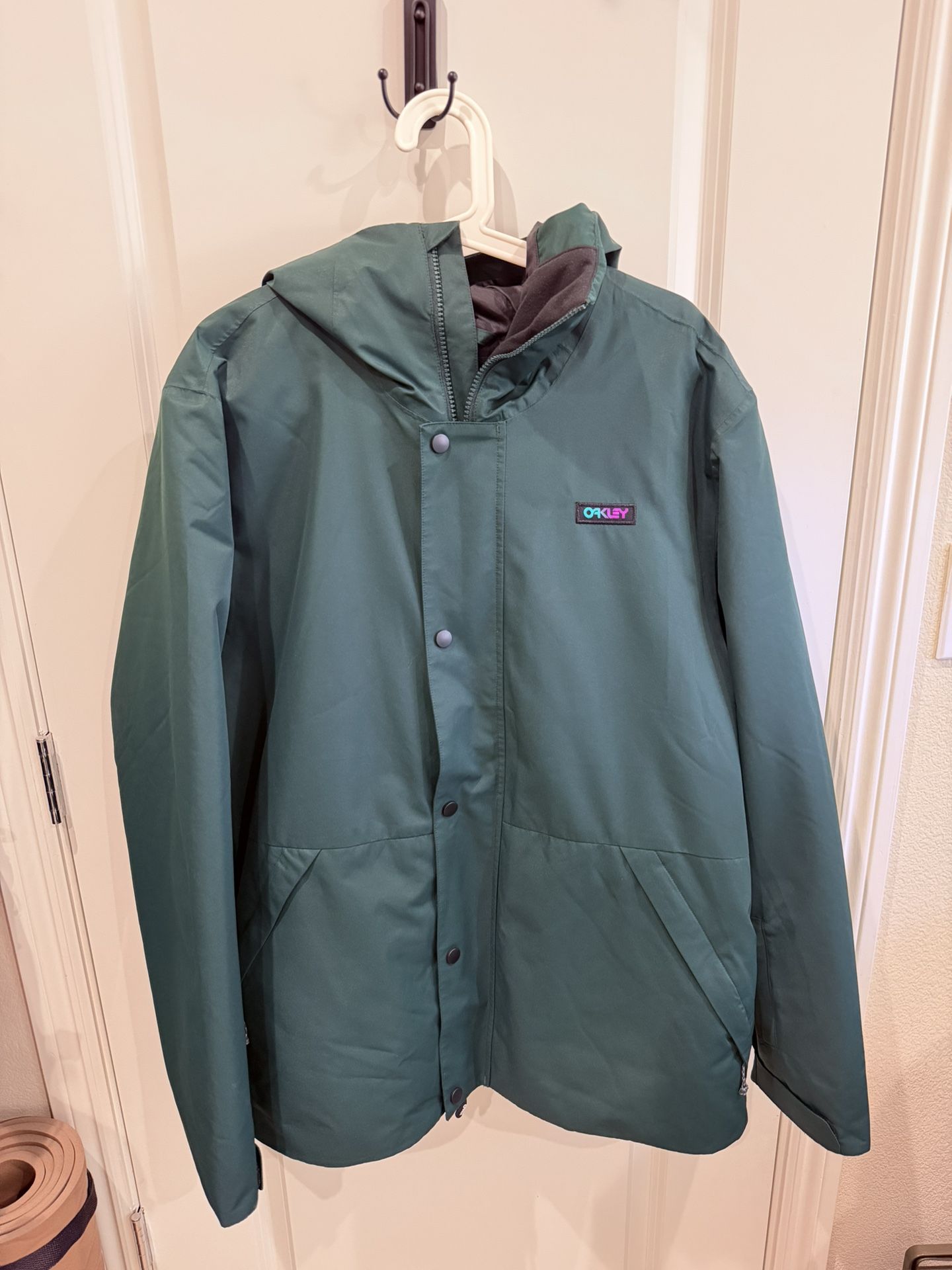 The Oakley Ski Thermal Jacket Men's is a stylish and functional outerwear piece perfect for winter and fall seasons. Made from polyester with a thermal lining, this mid-length jacket provides warmth and comfort during outdoor activities like skiing. The green color and solid pattern add a touch of style, while the stand-up collar and zip closure offer practicality. With the iconic Oakley logo accents, this jacket combines fashion and function for the modern man on the slopes. Easy to care for with machine washable instructions, this jacket is a versatile addition to any wardrobe. No exchange or return.