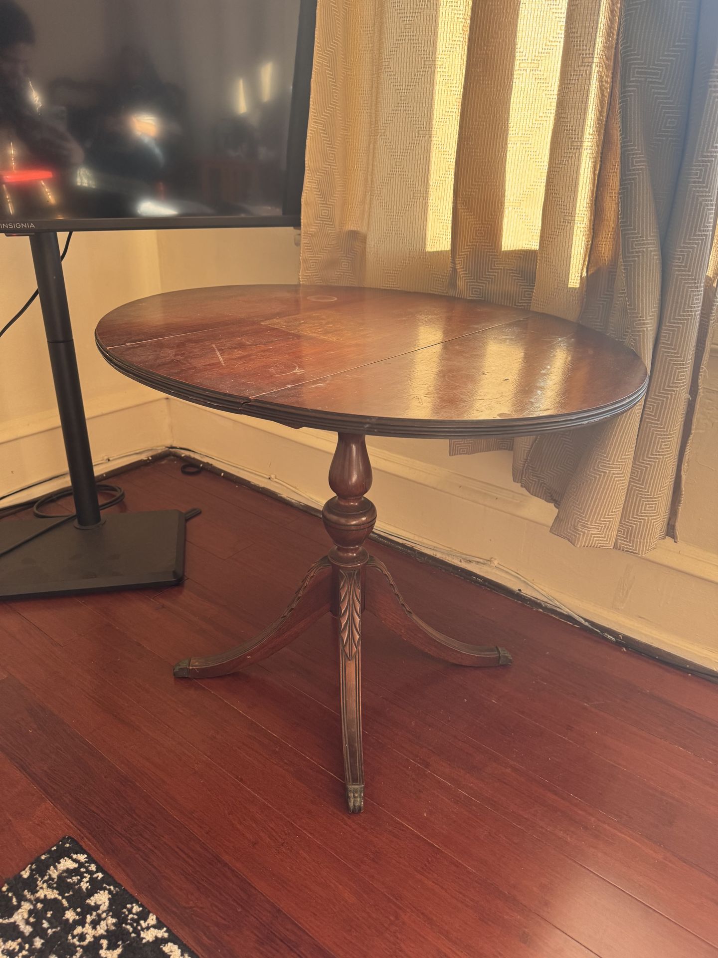 Compact round table in good condition. Great for apartments or small spaces. Stylish and practical.
