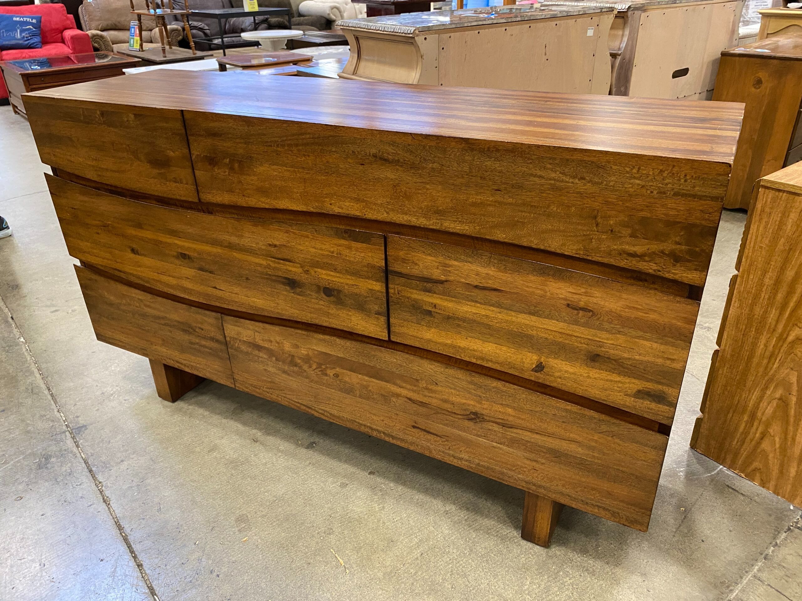 Solid Sengon Tekik Wood 6 Drawer Dresser with Wave Front Asymmetrical Drawers