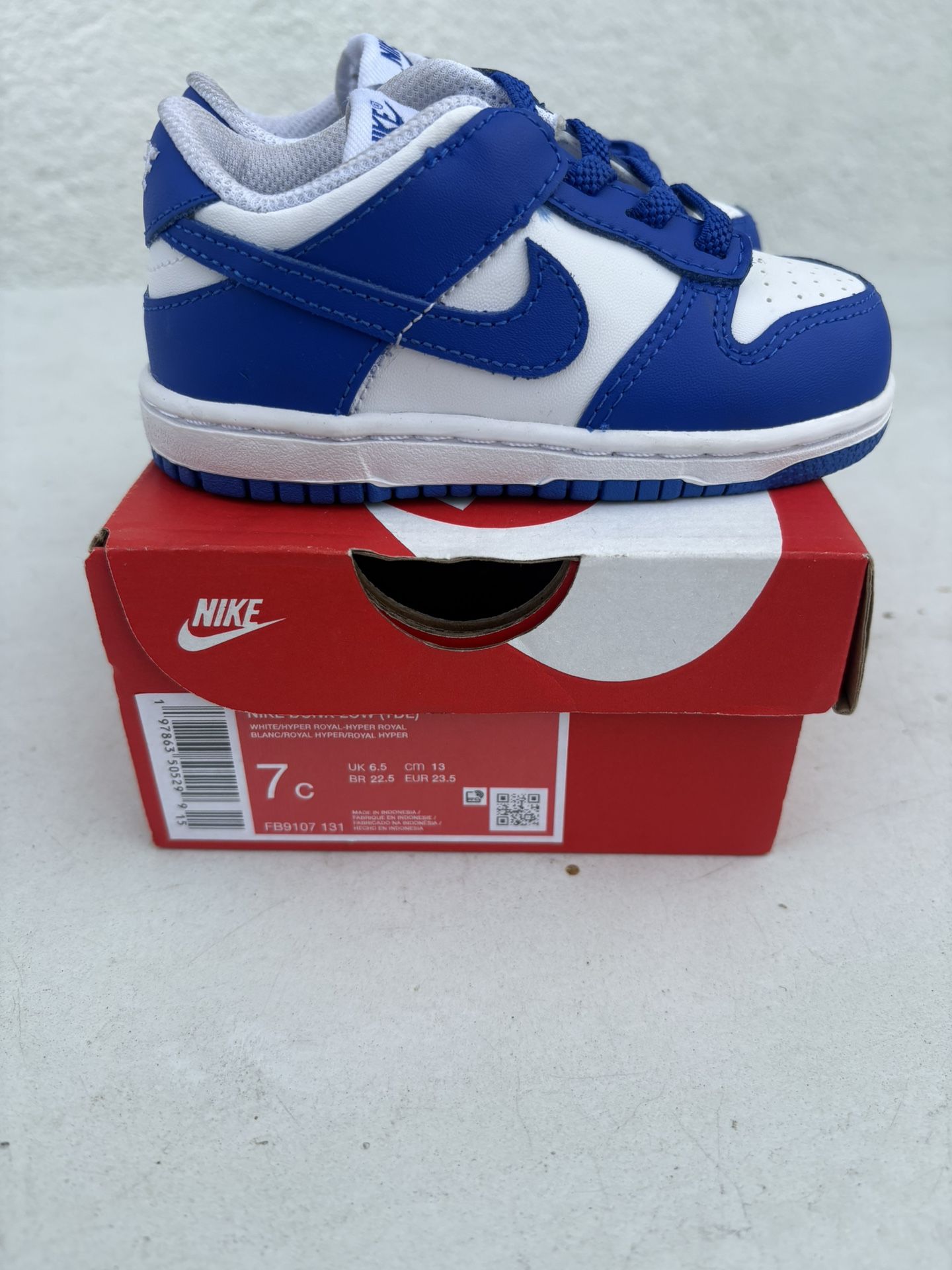 *NEW* TODDLER BABY NIKE DUNK LOW (TD) WHITE/HYPER ROYAL (FB9107 131) size 7c