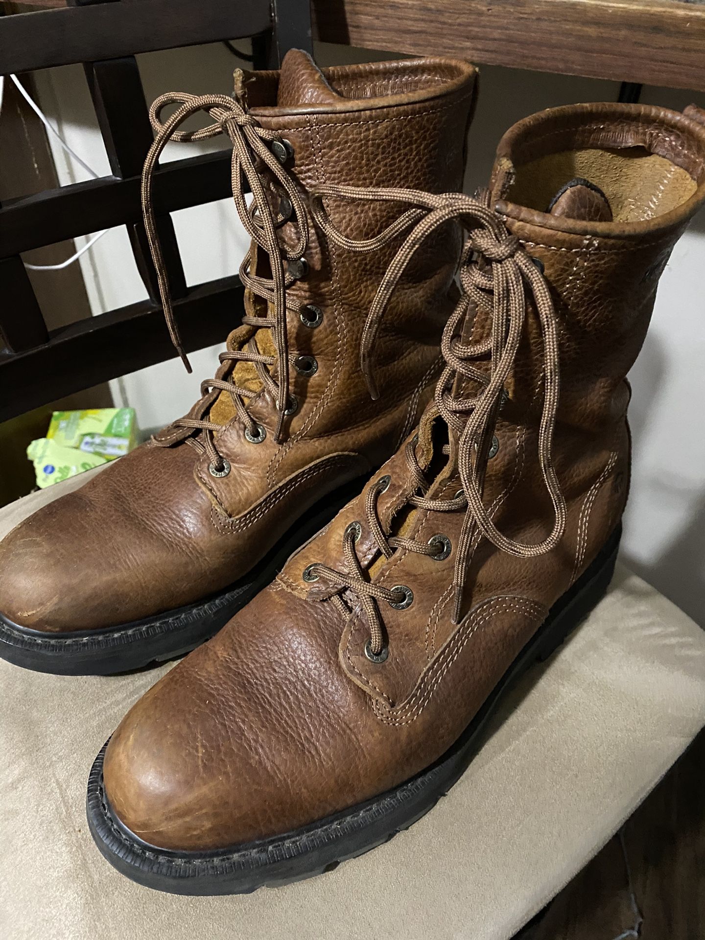 I have these Wolverine leather work boots. Size sz 13. They are about a half size big so if you’re are a size 12-12.5 they should fit perfectly on you. I originally paid $100 but I’m asking $60 cash. Local pickup only.