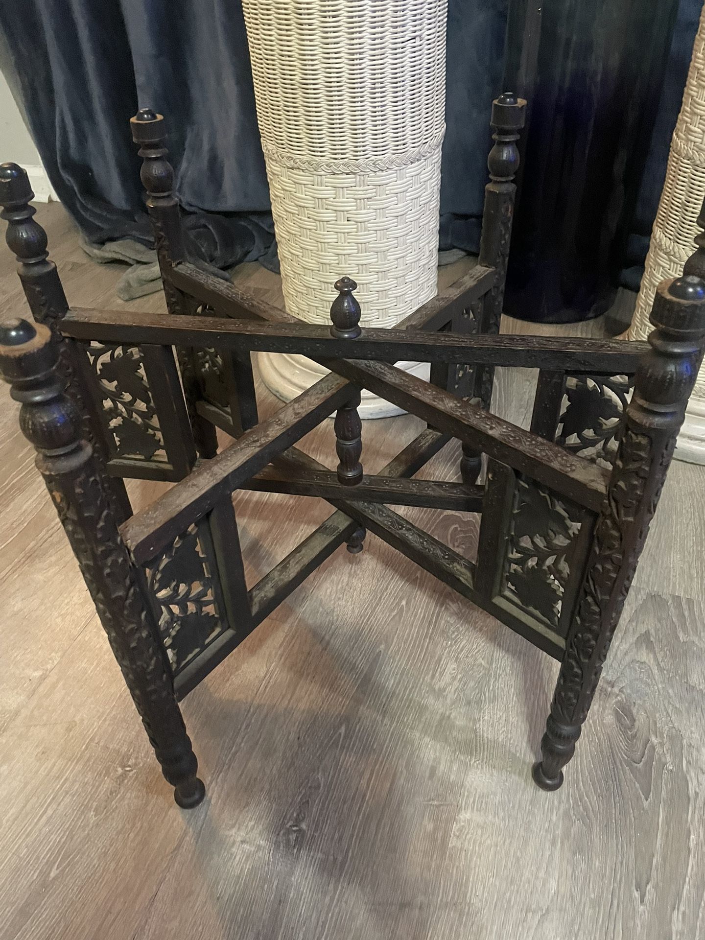 Vintage Medium Large Indian Ornate Wooden Folding Table Tray Legs Support Stand Plinth Dark Wood circa 1960-70's / EVE