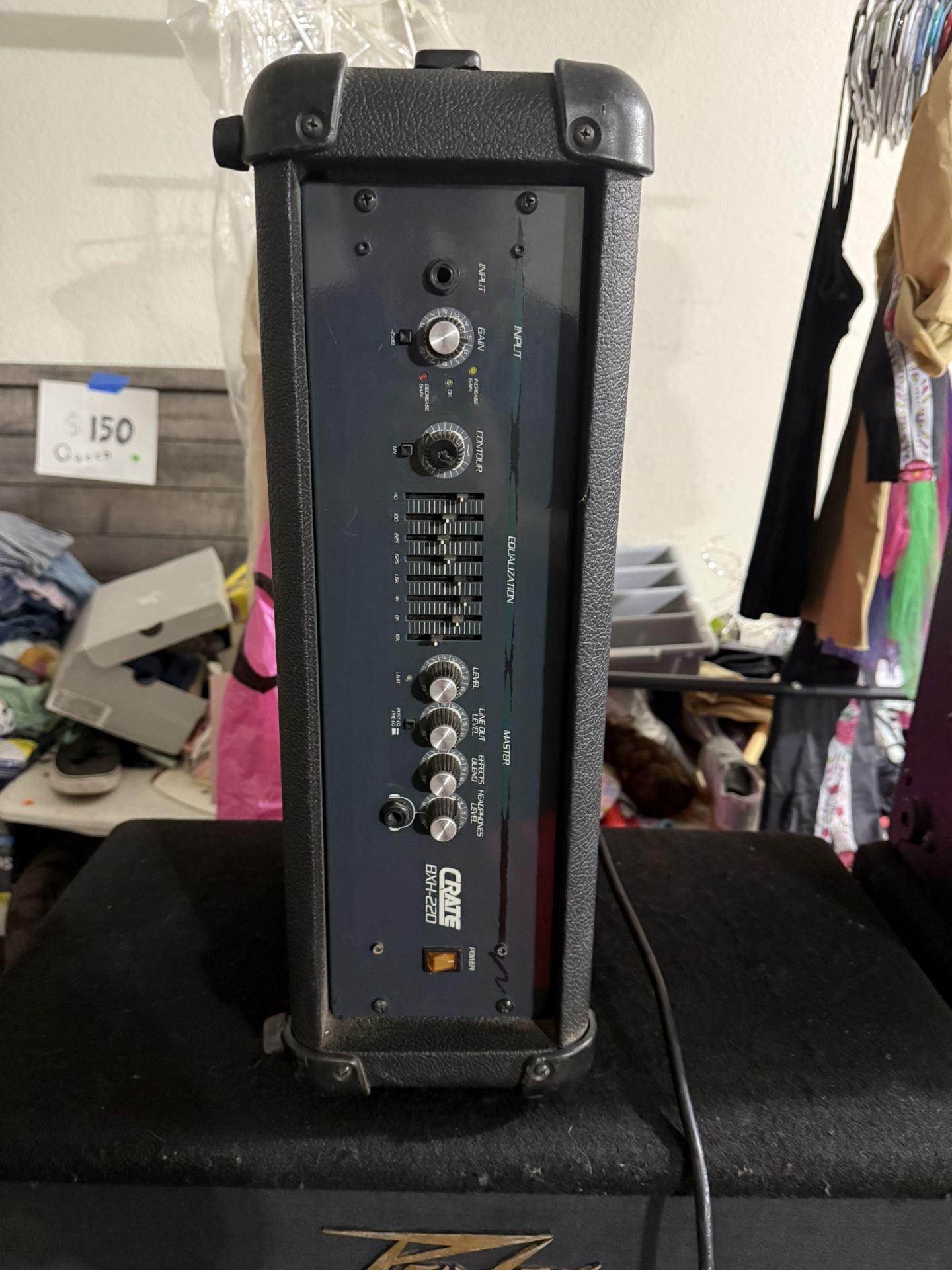 Crate BXH-220 Electric Bass Guitar Amplifier Head. • It delivers 220 watts of power into 4 ohms. • Key features include a 4-band EQ, an effects loop, and a headphone jack. • It is a solid-state amplifier head designed for bass guitars. • The amp head is described as compact and portable.