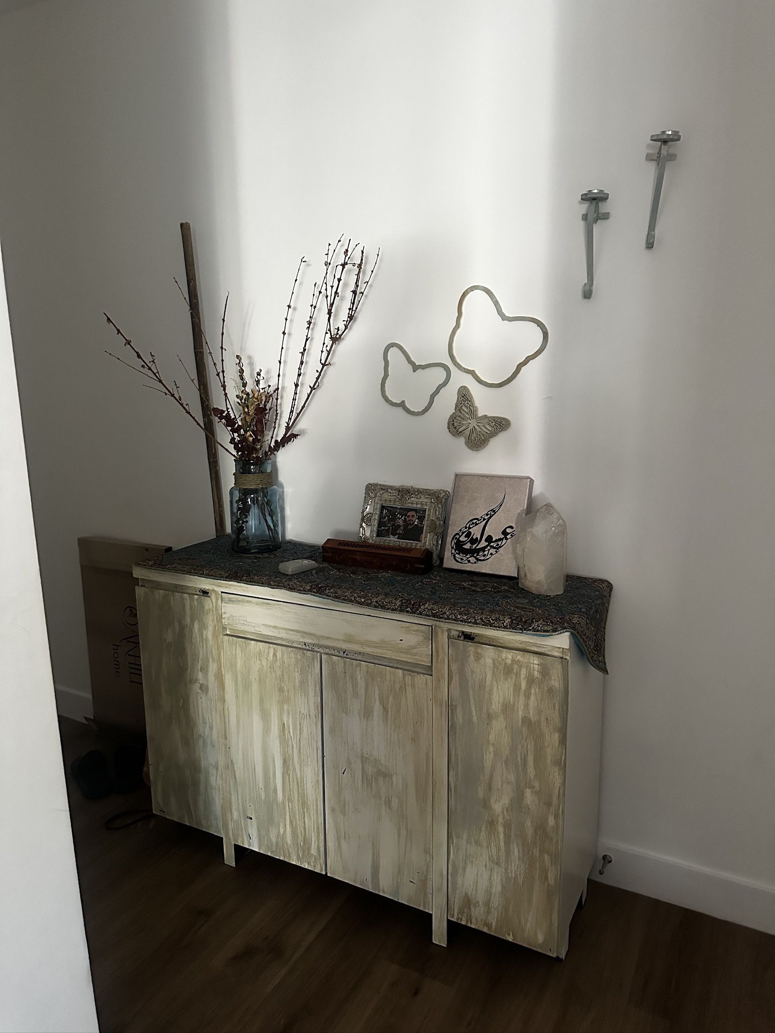 Beautiful rustic style wooden cabinet with storage space. Perfect for entryway, living room or bedroom. Features: • Solid wood look • Storage inside • Decorative piece Good condition.