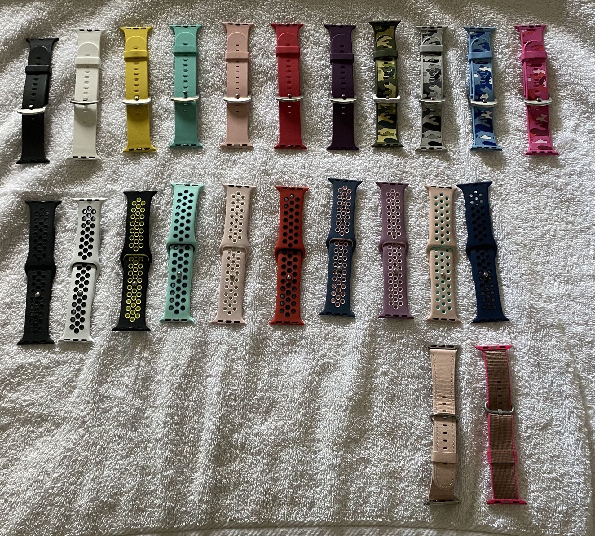 23 Apple Watch Bands. These are for the 38MM size watch! In excellent condition! $5 each $70 for all. You can Mix styles if you’d like! Storage container included if you buy all!
