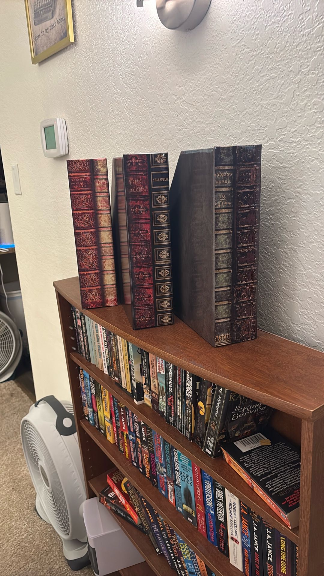 Fake book cardboard magazine holders. Only used for a few weeks went in a different direction. The price for the set of 3.
