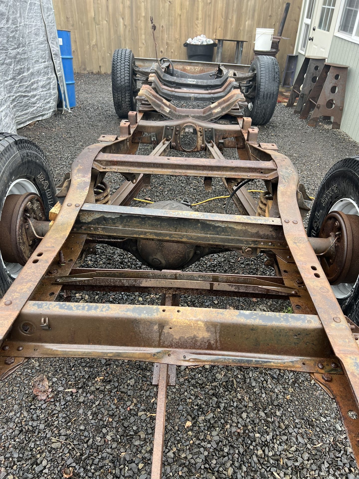 1967 Chevy truck chassis, long box frame , 2wd 3/4 ton, roller