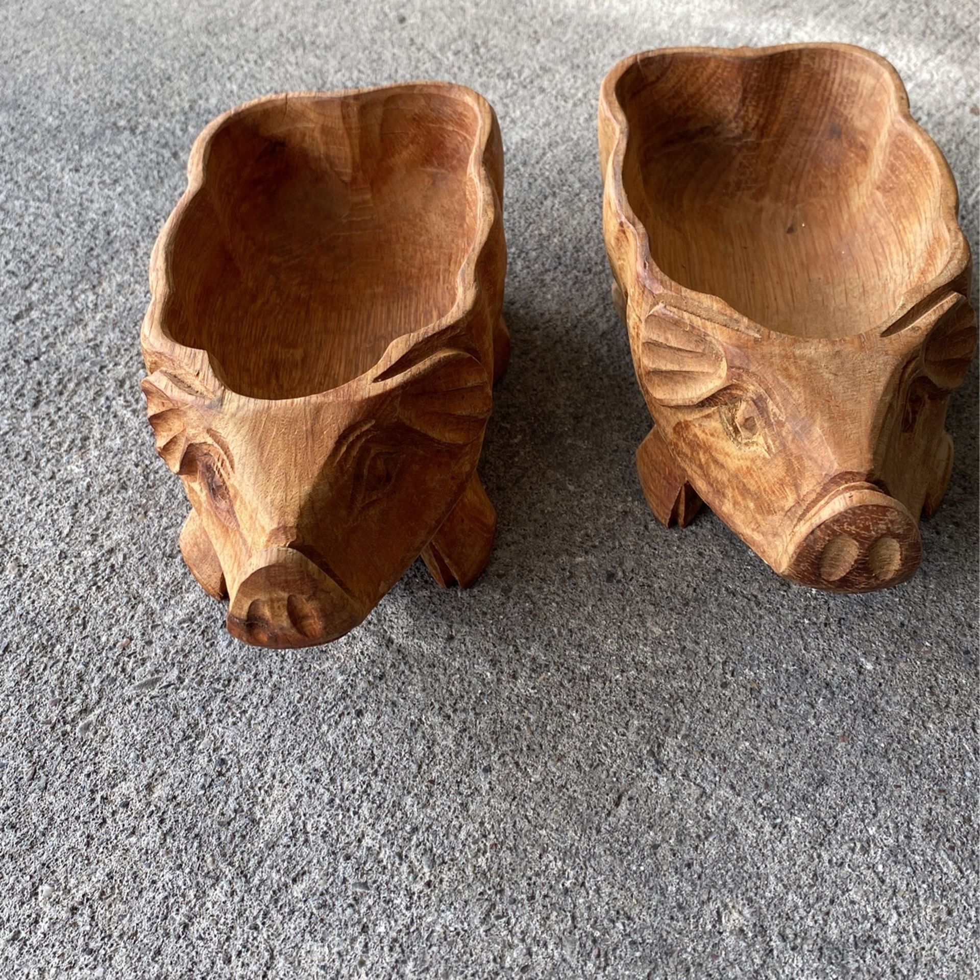 Vintage Hand Carved Woden Pig Bowls