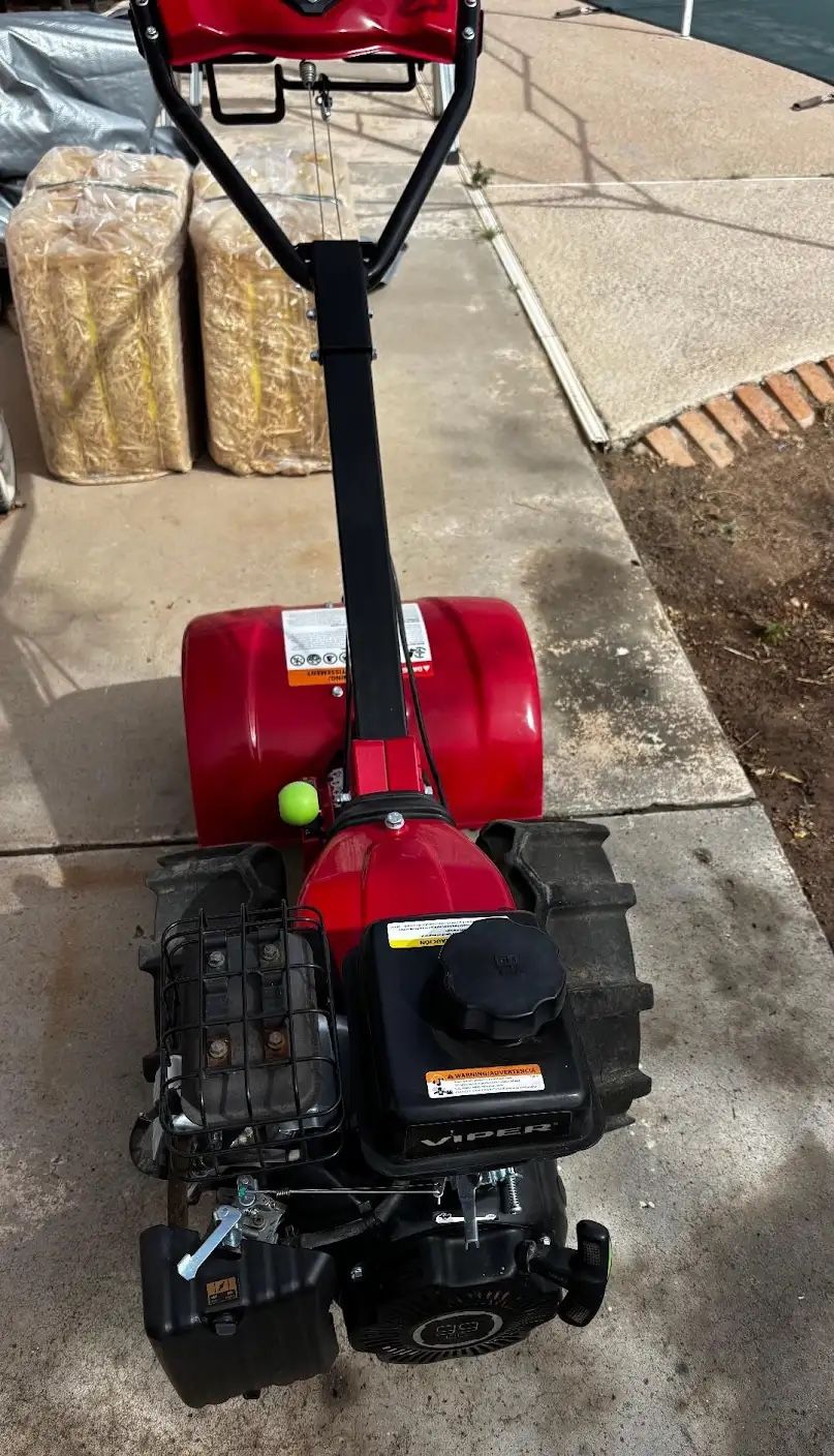 Tiller 500.00 5 Gallons of gas FREE W/ can Earthquake 17 in. 4-Tine Gas-Powered Pioneer Dual Direction Rear Tine Tiller DUAL DIRECTION- Operate in CRT FRUSTRATION FREE SHIFTING- COMPACT POWER- Designed for performance, the Pioneer uses a lighter and quieter 99cc Viper engine that is right-sized for the job reducing the weight and offering a smoother, less noisy and more balanced experience during operation. INSTANT REVERSE AIRLESS WHEELS DUAL-GRIP HANDLEBARS HIGHLY MANEUVERABLE Used / Like New – It only has about 10 hours of run time.