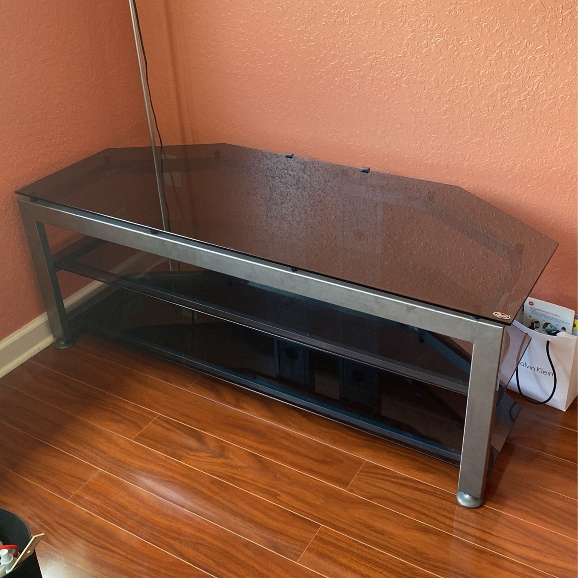 Glass table for TVs (or whatever you want on it), still in perfectly good condition.