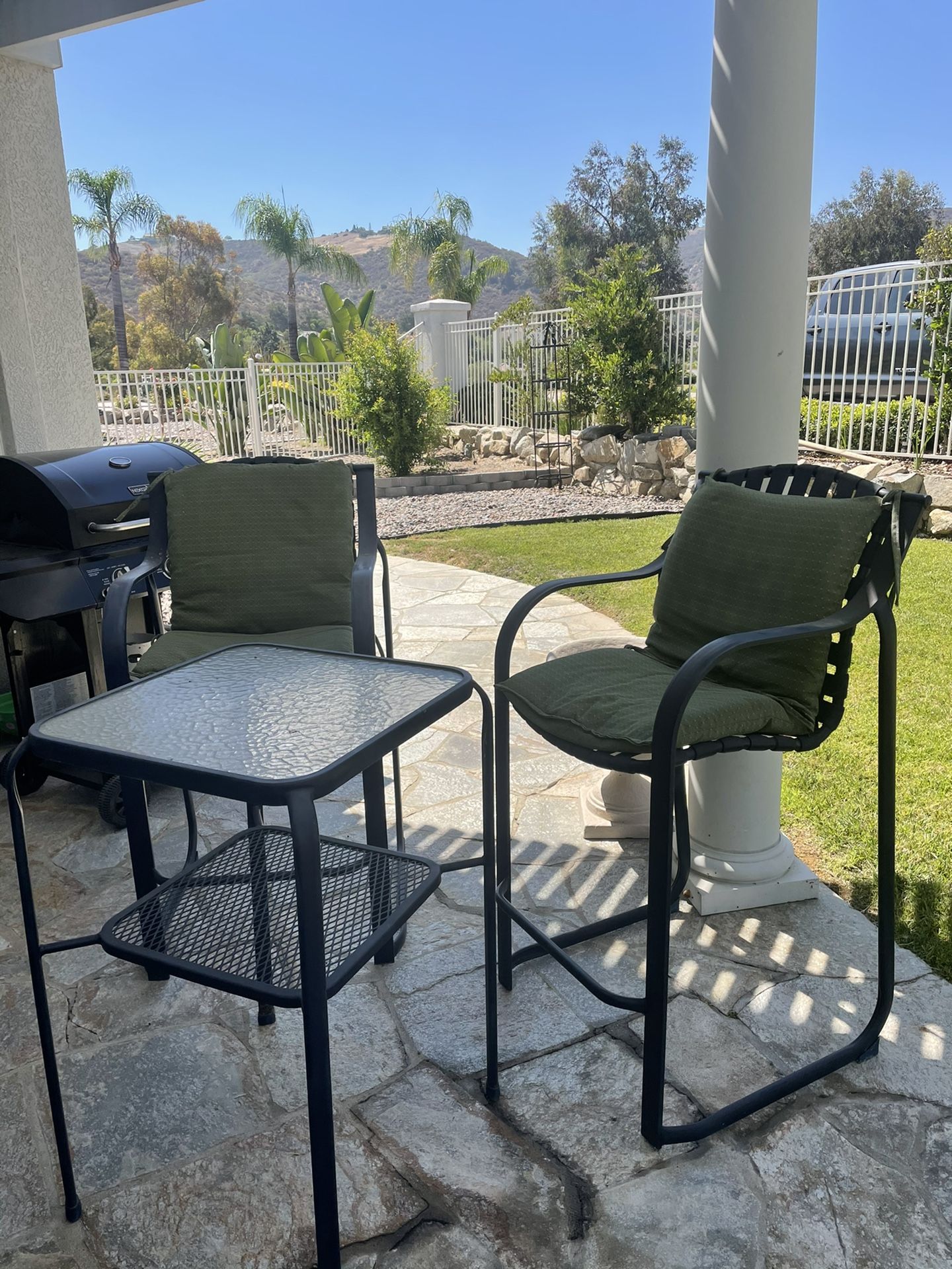2 Chairs and 1 Table Perfect for backyard, Poolside, Front Porch, or any other place you have in mind Let me know if interested