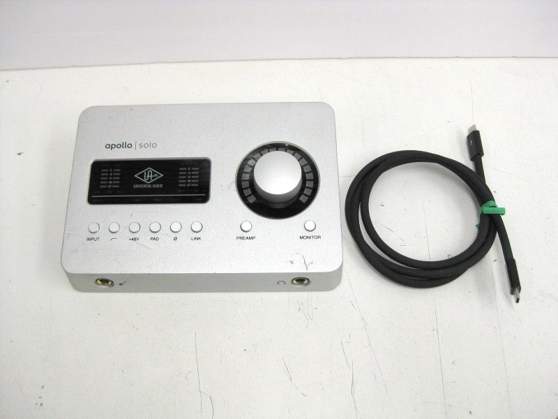 For Sale Used Universal Audio Apollo Solo Thunderbolt 3 Audio Recording Studio Interface. Works Fine. In Pictured Condition. Comes with Thunderbolt Cord. Only What's Pictured. Nothing Else Is Included In This Sale. Local pickup in Hollywood only. No delivery. No shipping. No meeting halfway. Only Visa, MC, Debit, Zelle, Apple Pay (plus tax) or cash (tax included). No other forms of payment are accepted